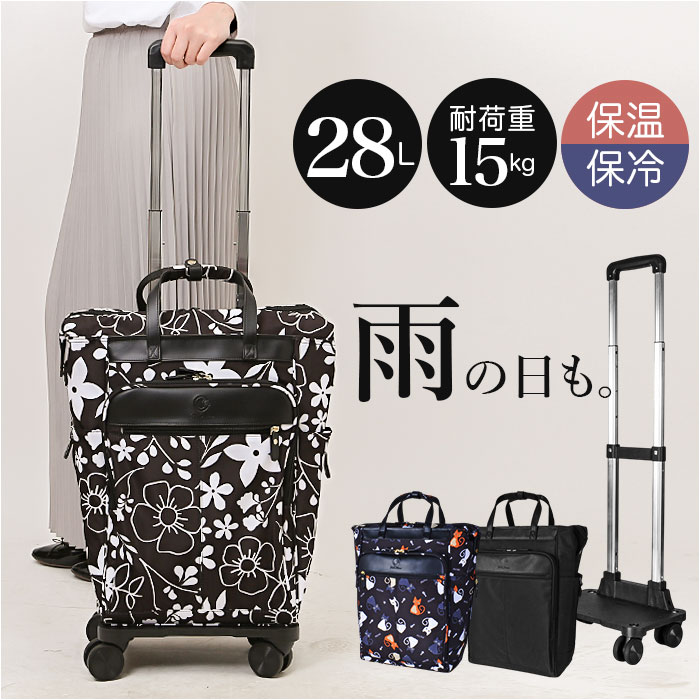 | 商品説明 | ・・【重たい荷物もスイスイ運べる】 ・重たい荷物もサクッと持ち運べる、心強い相棒☆ショッピングキャリーバッグ。 ・【様々なシーンで使える万能アイテム】 ・お買い物やレジャー、アウトドアシーンで大活躍!耐荷重は15kgで、荷物が増えても大丈夫。 ・【飲み物も入る大容量さが◎】 ・・2Lのペットボトルも収納可能な28L設計。まとめ買いにも対応できるサイズ。 ・【簡易保冷機能を搭載】 ・内側にアルミ蒸着フィルムを使用し、生鮮食品の持ち運びも安心な作り。※1 ・【安定した四輪仕様】 ・キャスターは4輪付いており、安定した走行が可能◎自立するので置き場所にも困らない☆ ・【スムーズに押せる360度回転】 ・・360度回転するキャスターなので、横押しが出来るのもポイント。 ・【載せたカバンが落ちない】 ・バッグ底のゴムバンドと背面のループを台車部分のフレームに取り付ければカバンが落ちない ・【お財布などの小物とまとめて】 ・フロントにはファスナータイプの収納ルームを設け、お財布やスマホなどをまとめて収納可能。 ・【小物を仕分けて収納】 ・迷子になりがちな小物の定位置に最適なオープンポケットを2つ配置。 ・【傘の置き場所に困らないのも】 ・傘をすぐに差し込めるゴムループをカバンのサイドに配置。 ・【誰でも使いやすい軽量設計】 ・約1.9kgとどなたでも使いやすい軽量設計。シニアな方でも扱いやすい。 ・【ちょっとの雨なら大丈夫】 ・バッグ生地は水滴や汚れを弾く、撥水加工済み。お手入れも拭き取るだけ。※2 ・【カバンとしてそのまま使える】 ・持ち手つきなのでサッと台車から外してそのままお買い物バッグに使うのもオススメ♪ ・【気分の上がる可愛いデザイン】 ・シンプルな無地から大胆な総柄デザインまで!おしゃれな可愛いデザインをご用意。 ・【消臭ネーム付き】 ・優れた消臭機能を持つ織ネームを縫い付けしているので、長く気持ちよく使える◎ |