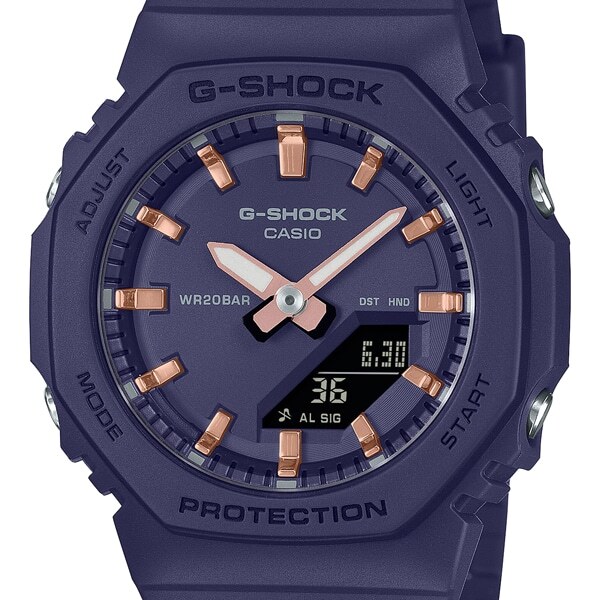 ☆★カシオ G-SHOCK WOMEN【クオーツ】GMA-P2100M-2AJF☆★人気のアナログ・デジタルコンビネーションモデルGMA-P2100。コンパクトなサイズで腕の細い方も快適に着用できます。バンドの主な樹脂パーツにはバイオマスプラスチックを採用。どんなコーディネートにも合わせやすいベーシックなカラーに、ピンクゴールドの華やかな差し色で腕元を上品に彩ります。◇メーカー希望小売価格17,600円(税込)◇●耐衝撃構造●材質:樹脂●20気圧防水●電池寿命:約3年●無機ガラス●ストップウォッチ●タイマー●時刻アラーム5本・時報●ダブルLEDライト●LED:ホワイト●フルオートカレンダー●操作音ON/OFF切替機能●精度:平均月差±15秒●12/24時間制表示切替●針退避機能●サイズ:46×40.2×11.2g●重さ:40g※新品未使用品※取扱説明書付※メーカー保証書1年付※国内正規品