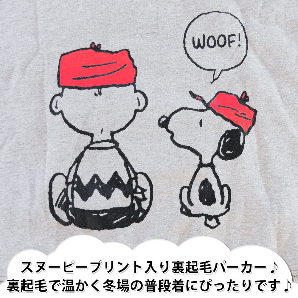 正規店仕入れの新品未使用品です 綿とポリエステル素材で、吸汗速乾に優れます 背中にスヌーピーのプリント入り裏起毛パーカー 裏起毛で温かく冬場の普段着にぴったりです |