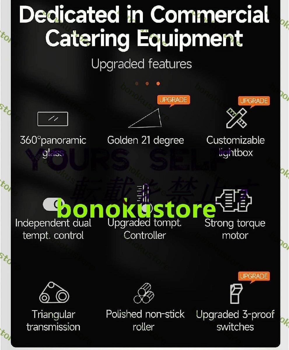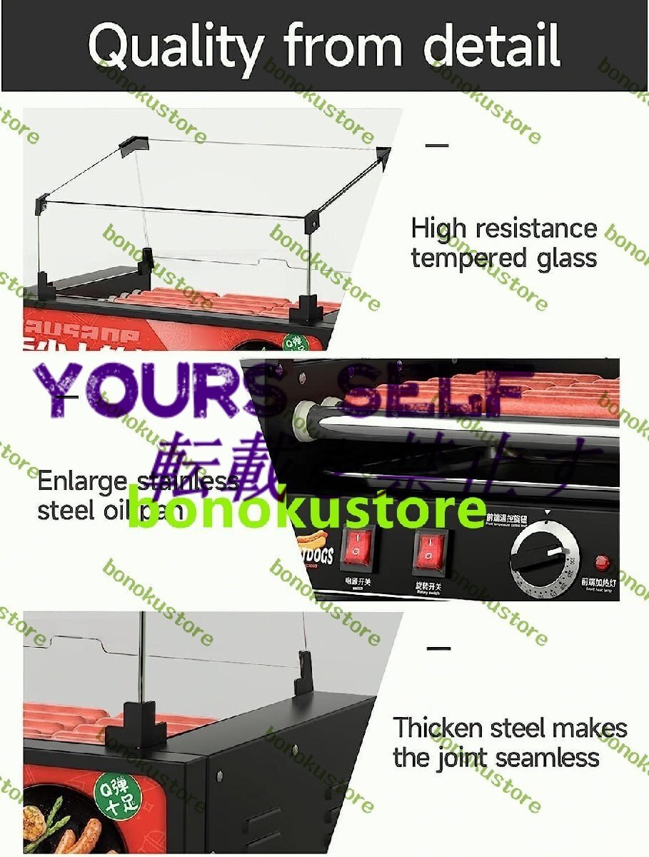 商品の説明 多用途のローラーは、標準から特大、スタジアムサイズのホットドッグ、太いソーセージや細いソーセージ、さらには冷凍ホットドッグまで、あらゆる種類の肉を処理できます。 使い方は簡単で、ホットドッグをローラーの上に置き、温度を設定して調理するだけです。