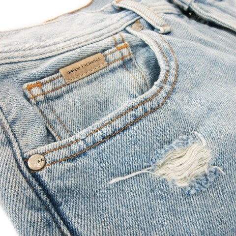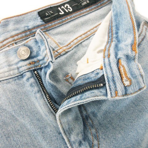 アルマーニエクスチェンジ A/X ARMANI EXCHANGE J13 スリムフィットデニムパンツ ストレート ダメージ加工 ロゴ 刺繍 プレート W28 青