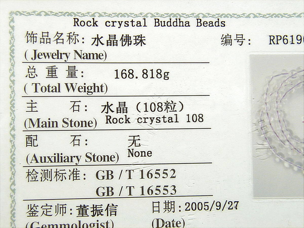 最後の9、10枚のの写真をご覧ください。本品にお付けする開光証書は、中国佛教協会と北京八大処霊光寺により発行されたものです。写真右側の大きい開光証書は、正式の原本です。(1,600件の開光品に対してたった一つの証書が発行されたのみです。小さい正式開光証書は、中国佛教協会と北京八大処霊光寺により発行された本品のための正式開光証書です。)