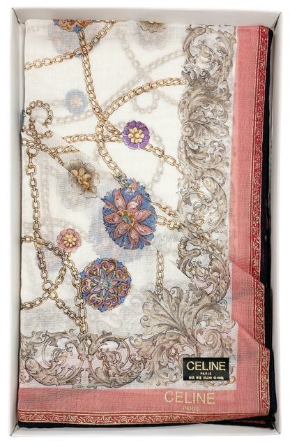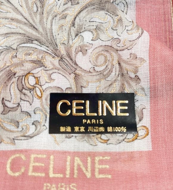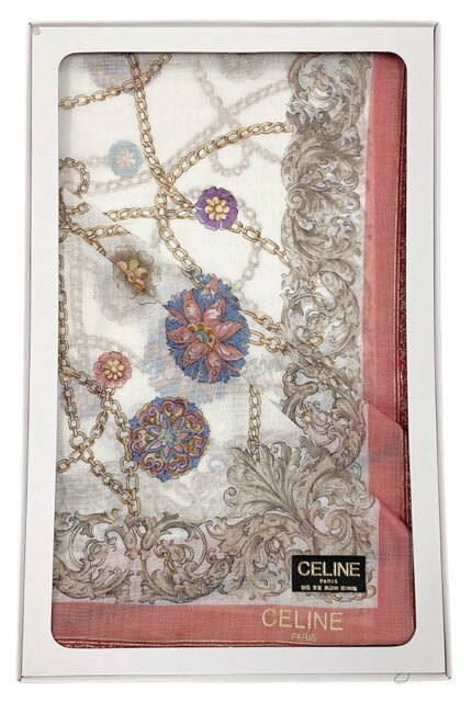 未使用 セリーヌ ハンカチ スカーフ アクセサリー柄 チェーン ピンク レディース CELINE 100% コットン 【中古】