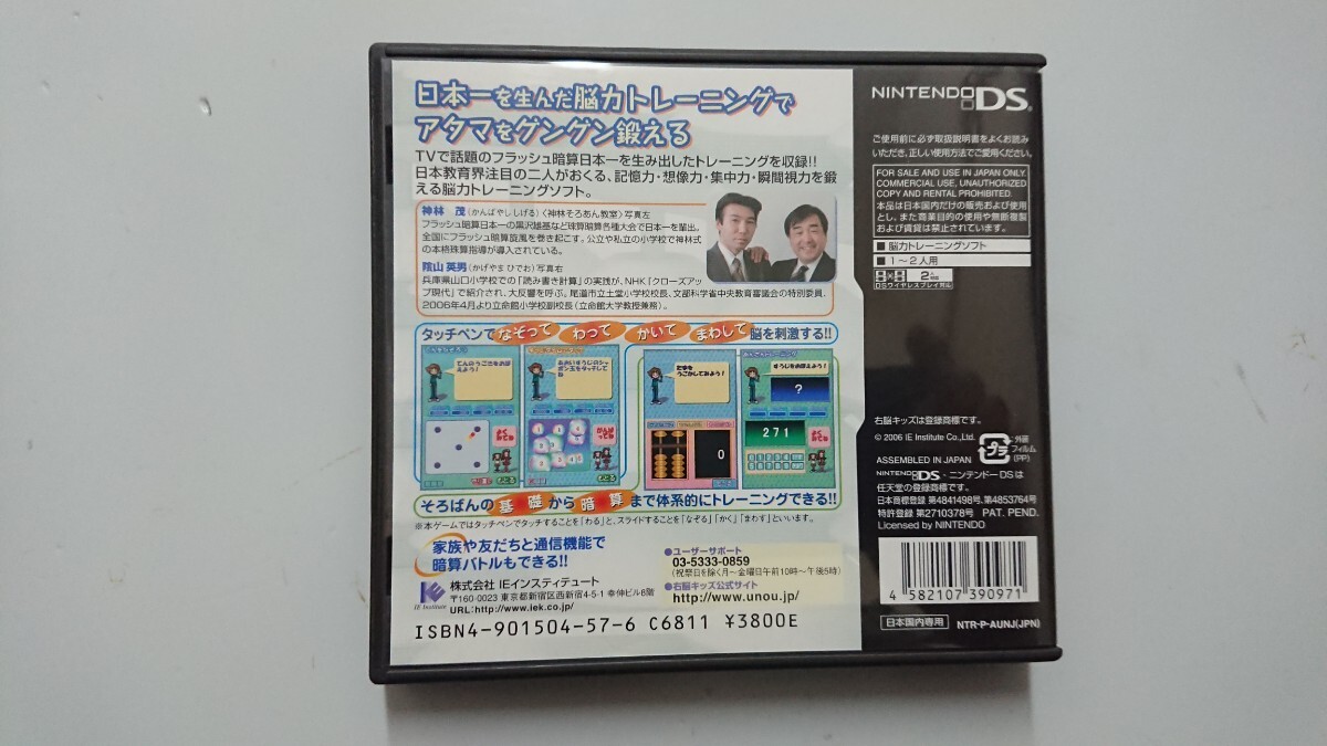 神林式脳力開発法 右脳キッズDS DSソフト中古です。ソフト、取説、ケースの出品です。中古ですので多少汚れキズあります。発送は定形内270円サイズです。中古ですのでノークレームノーリターンです。