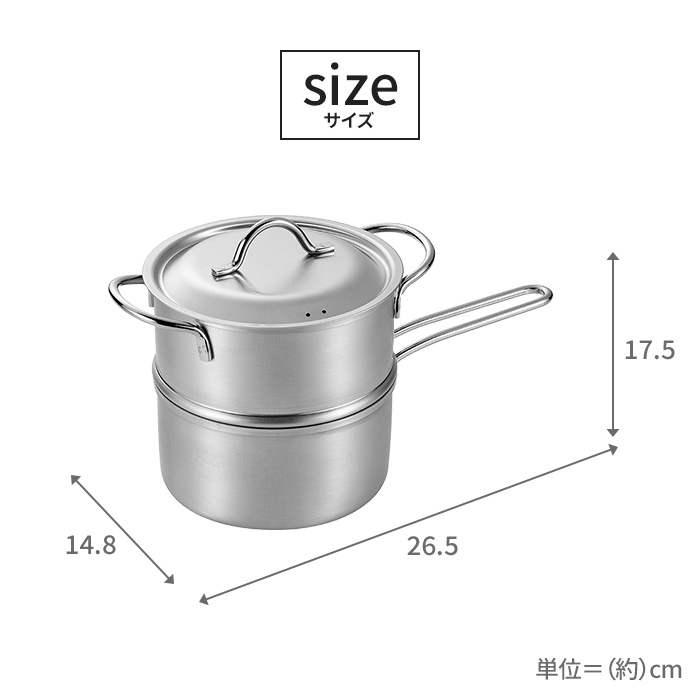 | 約幅14.8×奥行26.5×高さ17.5cm [下鍋]約幅14.8×奥行26.5×高さ7.5cm [上鍋]約幅14.8×奥行20×高さ8cm |