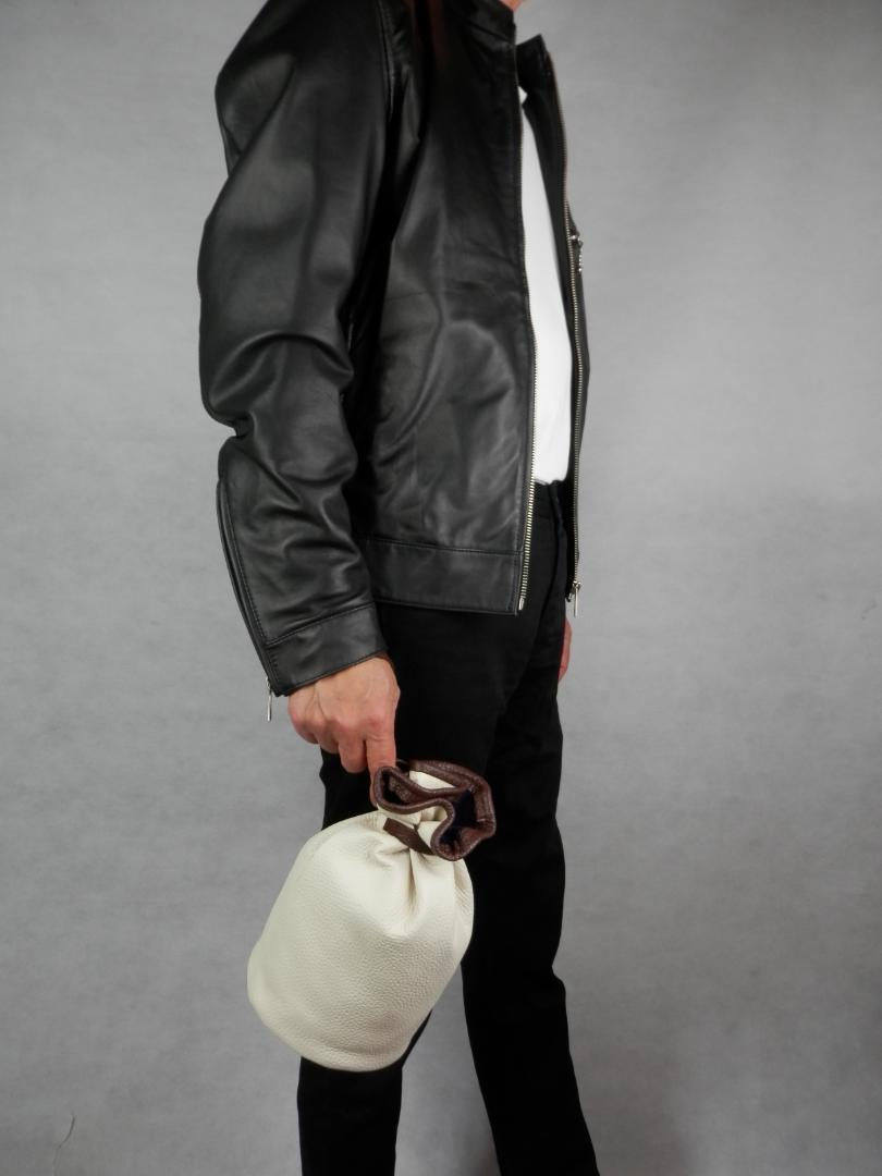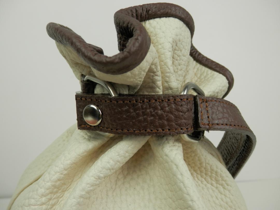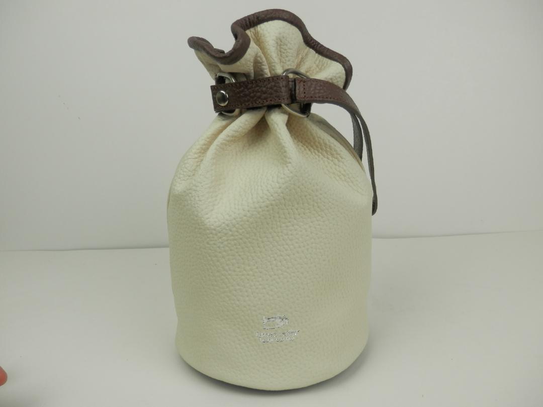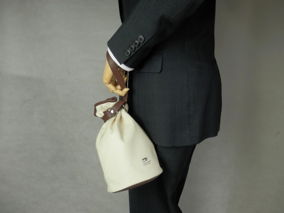 本革巾着バック オフホワイト/ブラウン メンズ 大人レザーHashimoto 匠の技 日本製 レザー ジャケットスタイル ラフなデニムスタイルにも