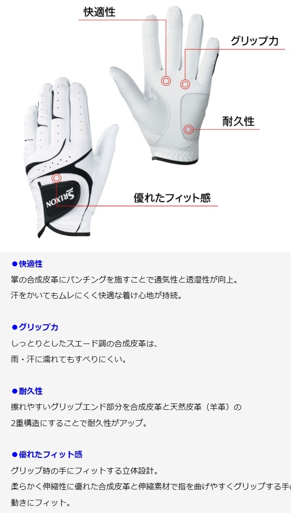 ダンロップ SRIXON スリクソン グローブ ホワイト 23cm 3枚 GGG-S031 手袋