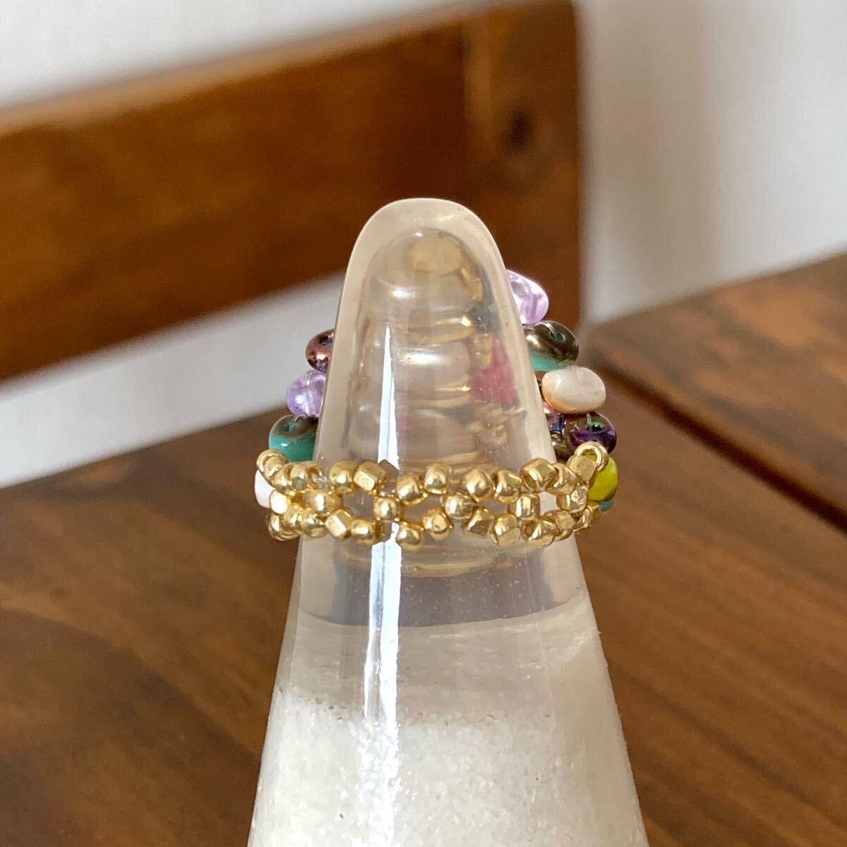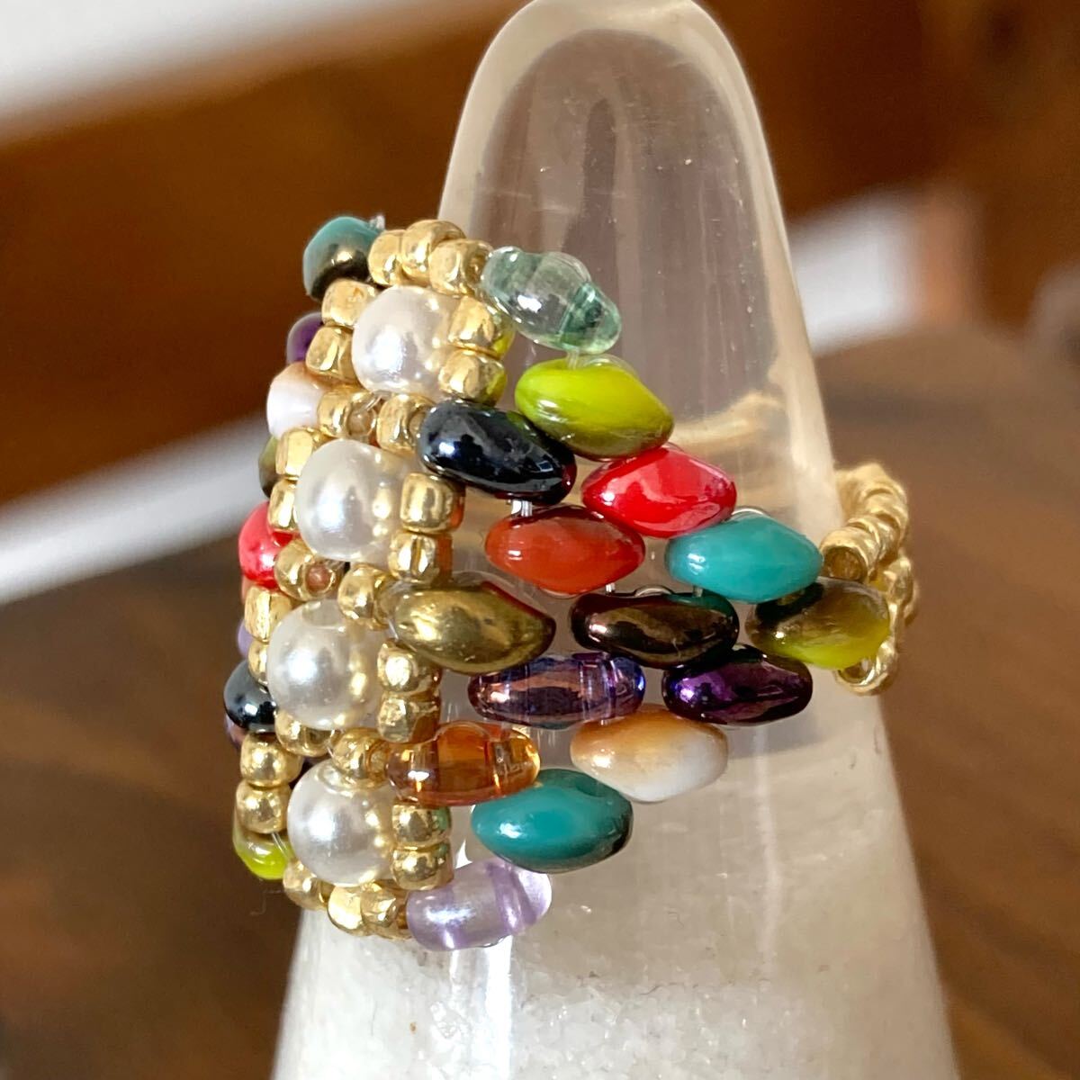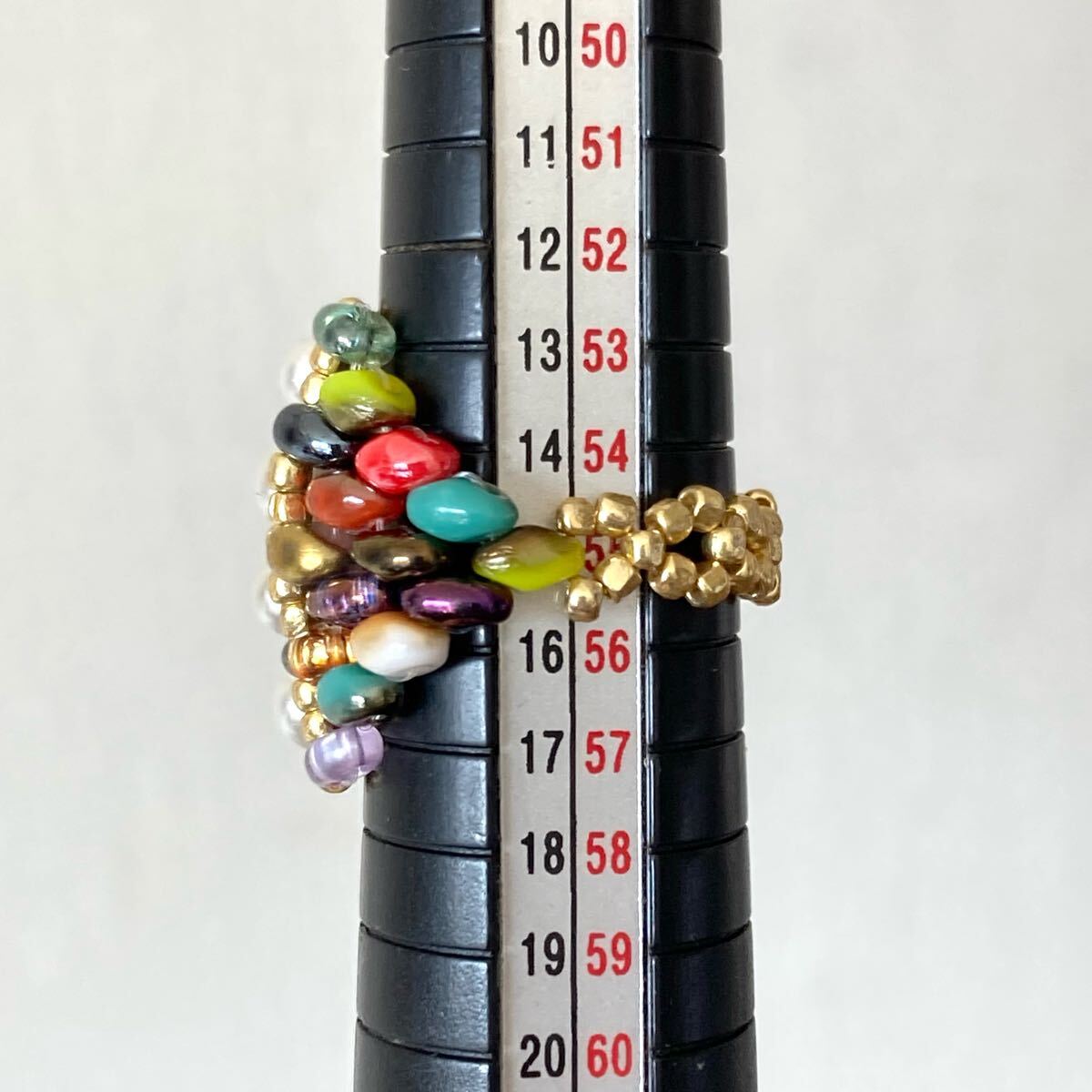 14-16号 ビーズ リング 指輪 ハンドメイド パールビーズとツインビーズのリング カラフル です。