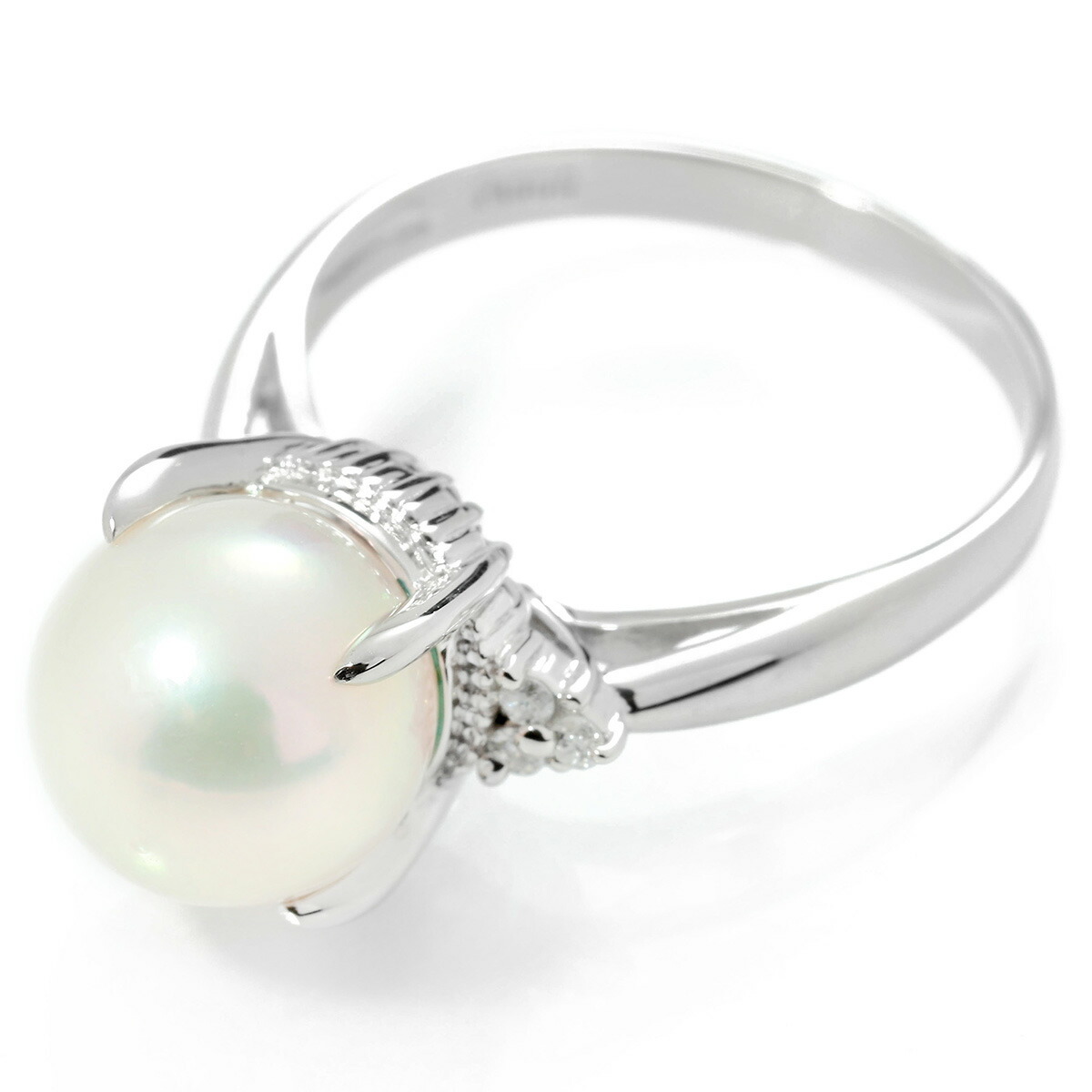 指元にふんわりと優しく輝く、9.3mmのアコヤ真珠リング。柔らかな光沢を引き立てるように、脇石のダイヤモンドが繊細に煌めきます。ひと粒の真珠が放つ静謐な美しさと、ダイヤモンドが生み出す華やかな輝きが、上品な一品です。