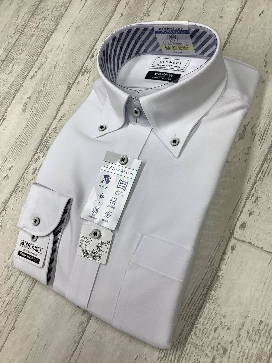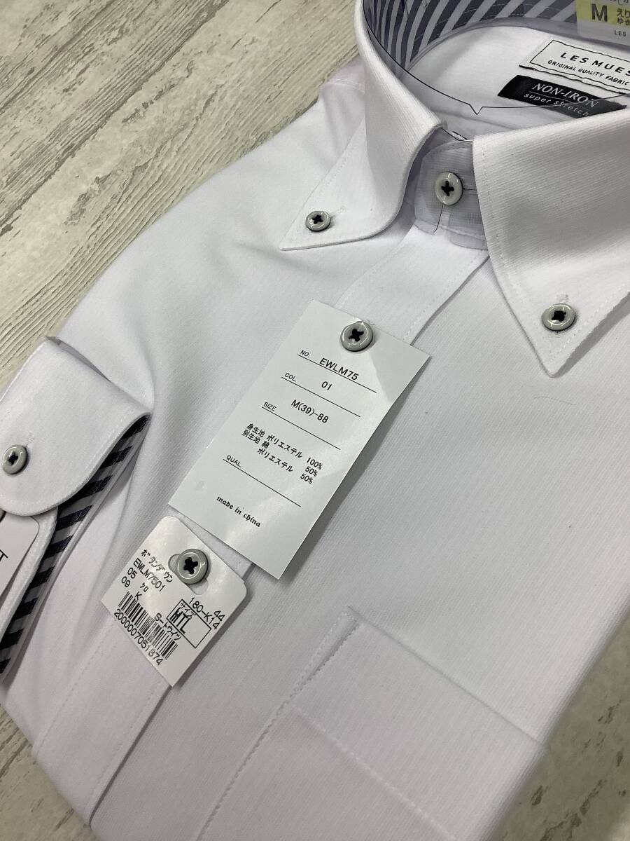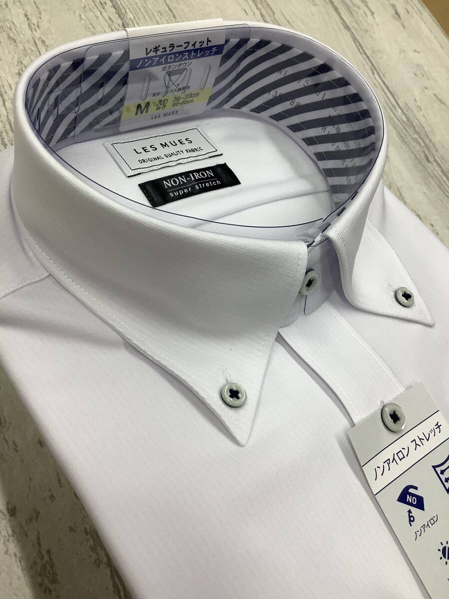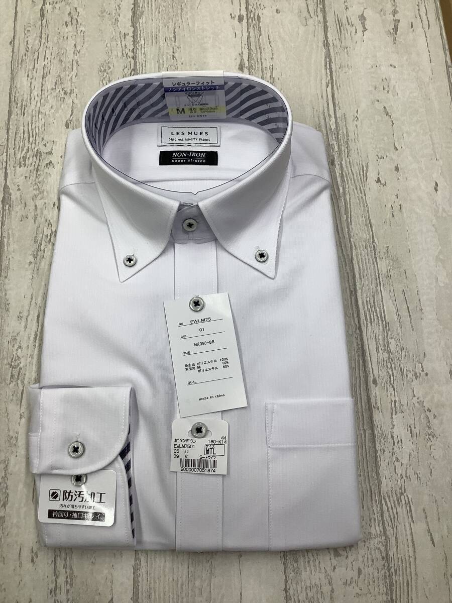 新品未使用★39-88 長袖Mサイズ ★無地 カッターシャツ ★ボタンダウン 定価4,990円 スーパーストレッチドレスシャツ