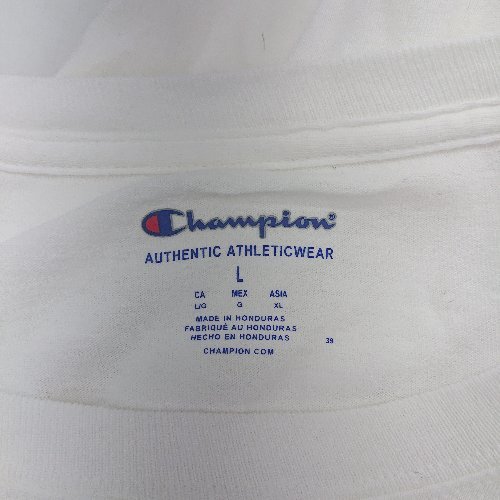 ◇ ⊇ Champion チャンピオン 袖口ロゴ刺? 長袖 ロンT サイズL ホワイト メンズ レディース E