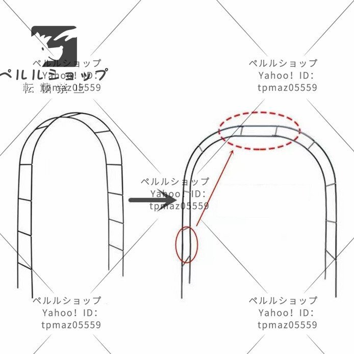 サイズ:サイズ表をご参照ください。掲載された写真は定番形になります。様々な形にDIY可能です。使用したい空間の広さに応じてお好きな形に組み立ててお使い頂けます。パイプ径:約13mm材質:鉄製簡易組立式:下部を埋め込む等、地面に固定してご使用ください。ツタを巻きつけ