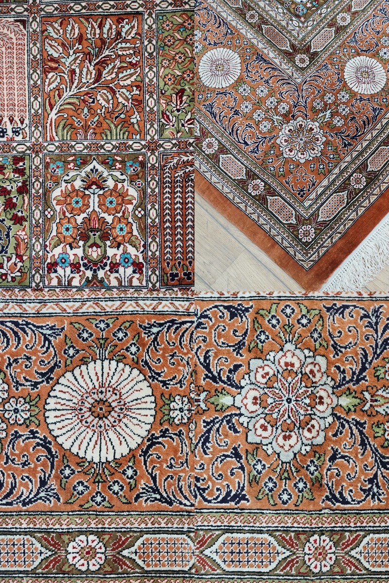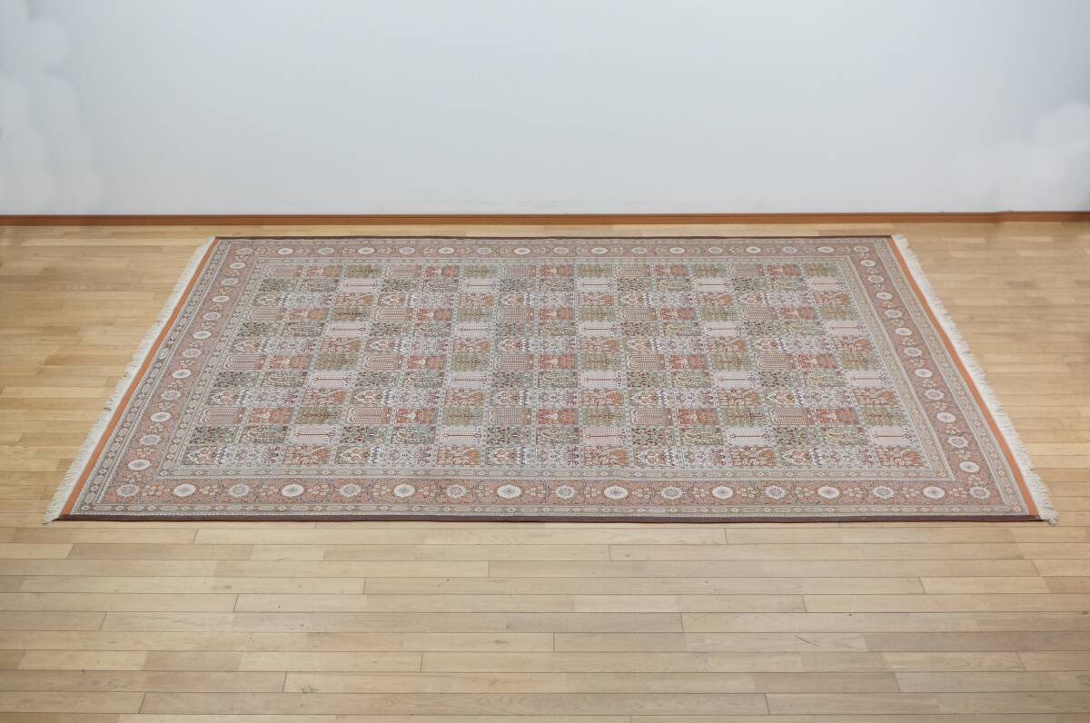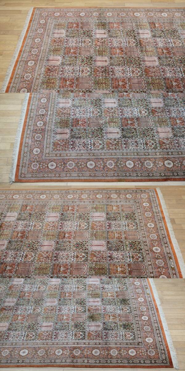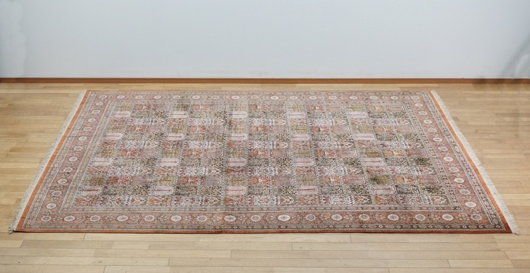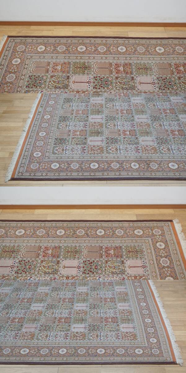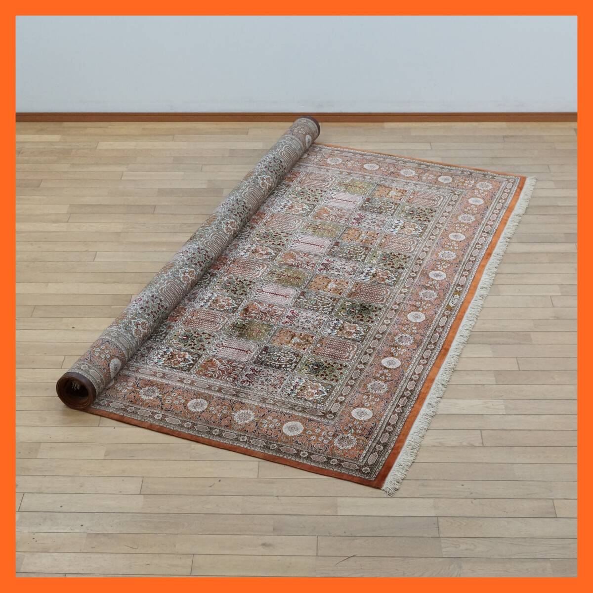 東ハ:【ペルシャ絨毯】シルク製 工房サイン入 ヘシティ文様 高級絨毯 全体幅約358㎝ ヘシティーデザイン オリエンタルカーペット |