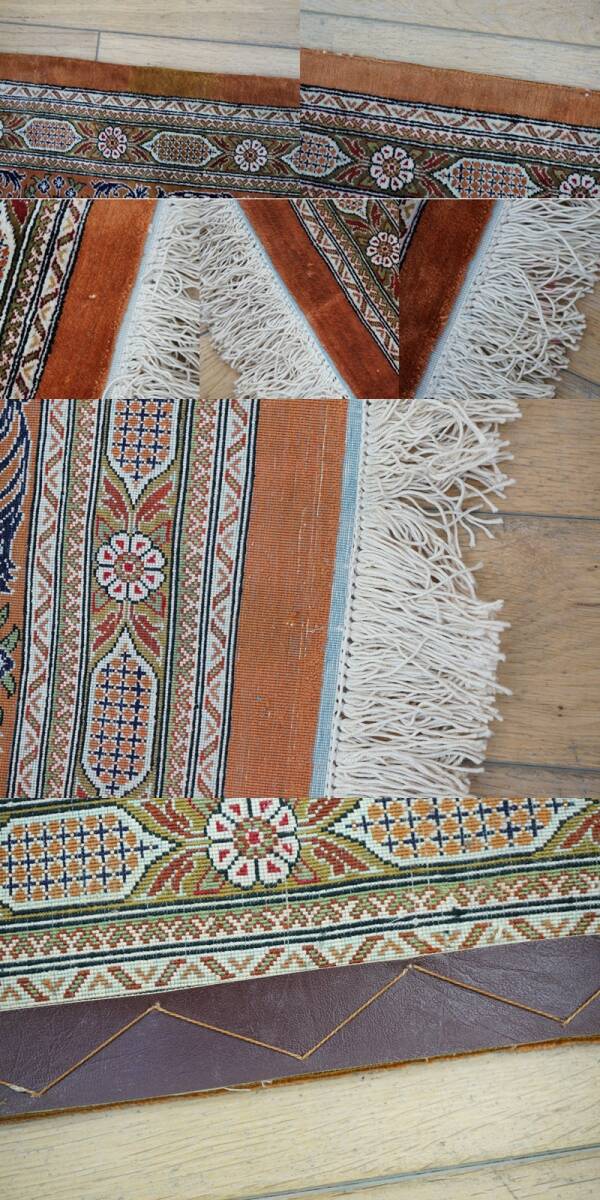 ■東ハ:【ペルシャ絨毯】シルク製 工房サイン入 ヘシティ文様 高級絨毯 全体幅約358㎝ ヘシティーデザイン オリエンタルカーペット■ 工房サイン入 「 シルク製 ヘシティ文様 ペルシャ絨毯 」高級絨毯になります。 ヘシティ文様は別名を「ウィンドウズ トゥ パラダイズ(天国への窓)」と呼ばれる 天国を表すデザインです。 四角形のボックス1つ1つは天国のあらゆる場所を表現していると言われています。 18世紀にイラン北西部に生まれ、 バクティアリ地方の郵便部族を通してイラン全土に伝わったとされています。 伝統的なペルシャ絨毯は、 今でもあらゆる種類の絨毯の中で最高品質の基準となっており、 美的価値重視の美術品と実用性重視の工芸品の両方を兼ね備えた 美術工芸品と称されています。 シルクは見る方向で色合いが変わるため、変化のある表情をお楽しみいただけます。 ワンランク上のエレガントな空間を演出するお品としていかがでしょうか。 【サイズ】 ・全体 ※房む:(約) 厚さ0.5 × 幅358.0 ×奥行250.5 cm ・房 長さ : (約) 5.5 cm ※丸めての発送となります。 中古のお品となります。 付属品は写真にあるものが全てです。 使用に伴うシミヨゴレ・着色ヨゴレ、色ヤケ、ホツレ・毛抜け・欠け・毛の飛び出しなどが複数ございます。 商品画像をよくご確認の上、ご参加ください。 [管理No.25042181R1] |