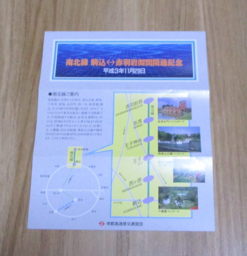 帝都高速度交通営団 南北線駒込~赤羽岩淵間開通記念乗車券