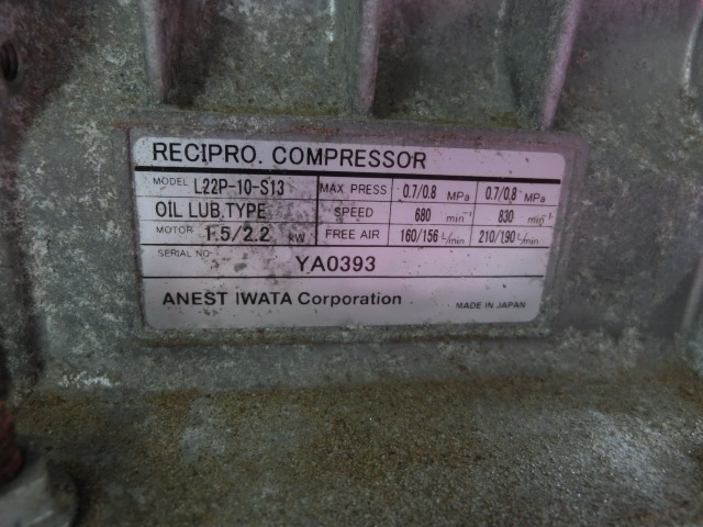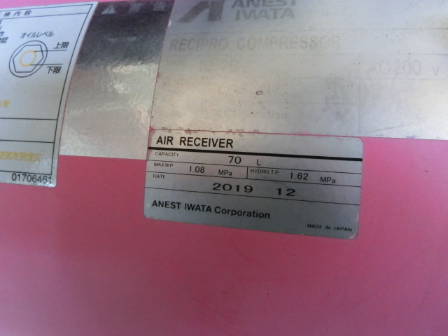 【柏市より】☆状態良好☆ アネスト岩田 高性能コンプレッサー 1.5kw 2馬力 70Lタンク  三相200V  引き取り可能 全国発送可能!
