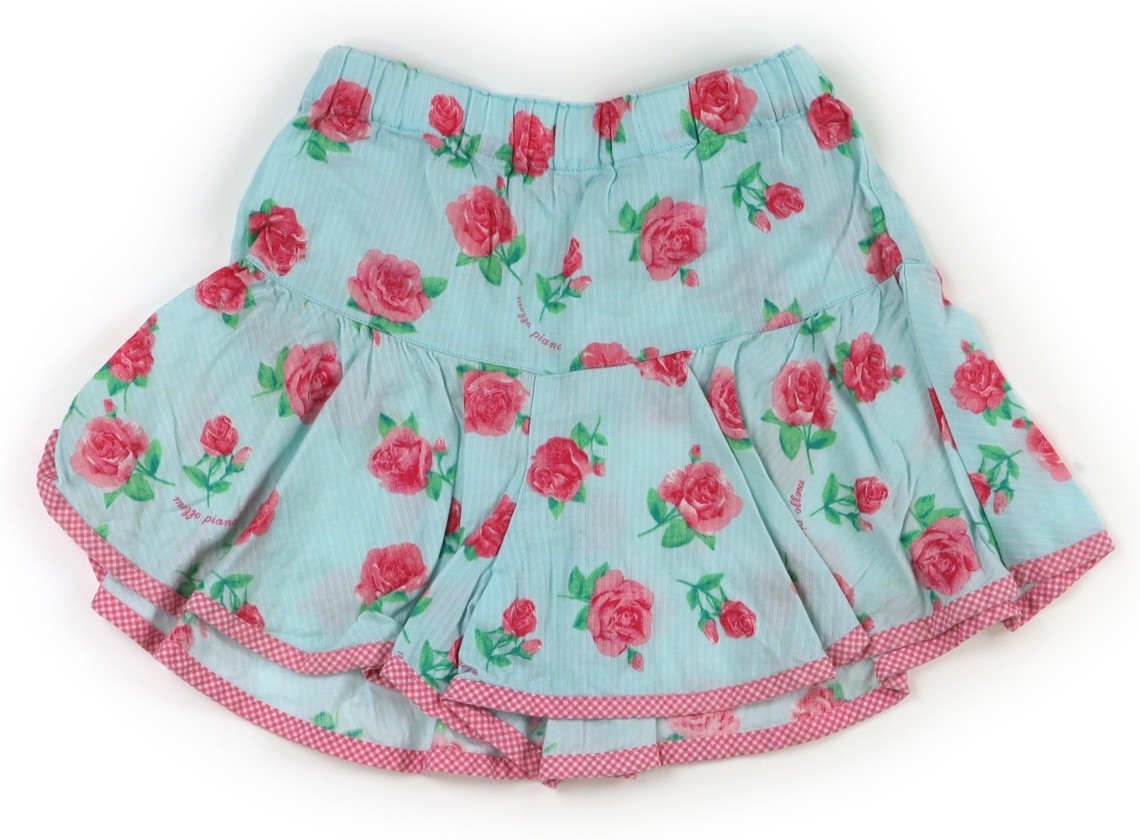 綿シャツ地で、ウエストはサイズ調整ゴムが付いています。若干色褪せ・毛羽立ちがあり、前身頃の裾付近に5cmほどの茶色いシミと1cmほどのシミが数か所あります。後身頃にも2cmほどのシミが数か所あります。まだまだお使いいただけます。