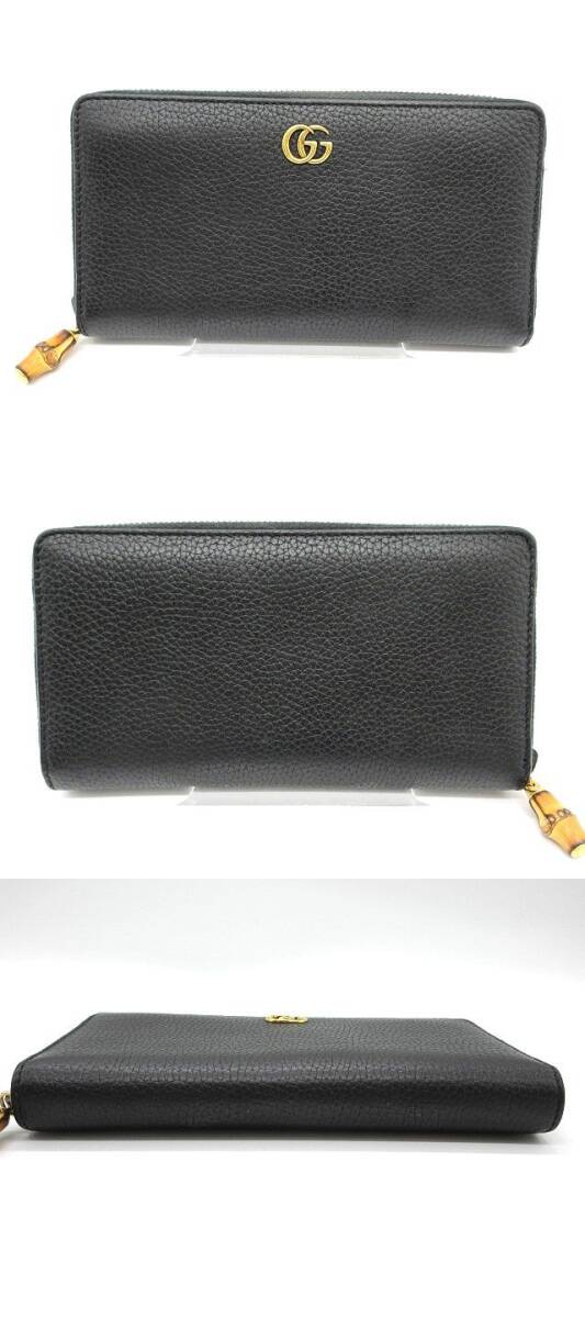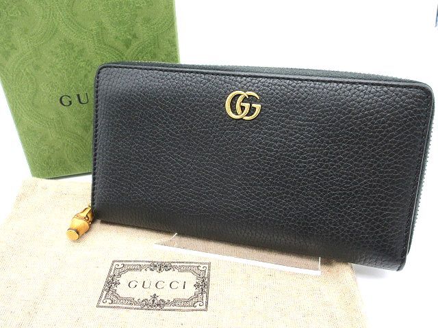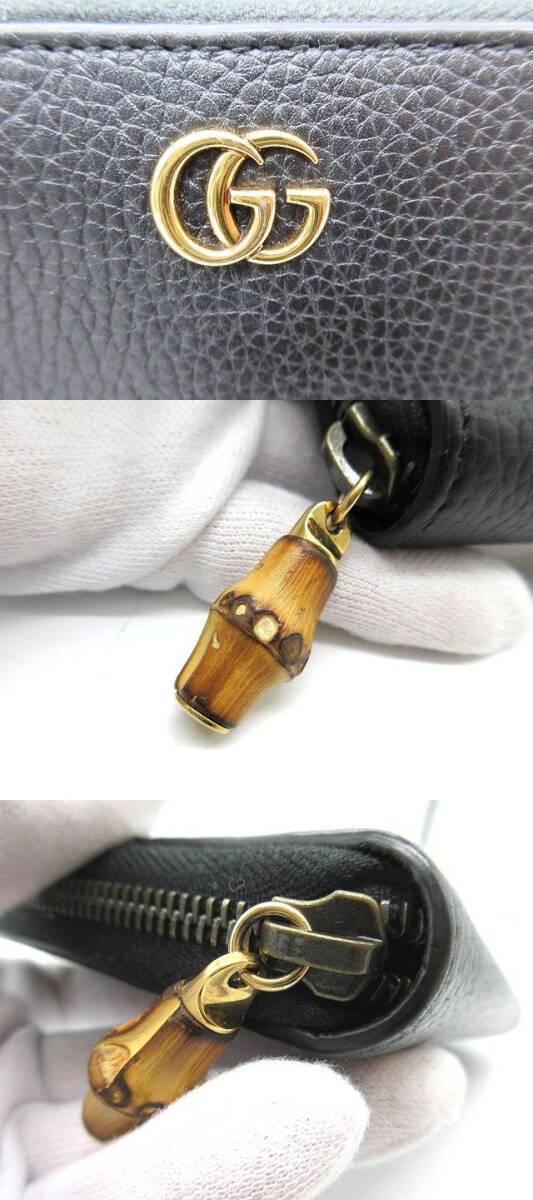 GUCCI/グッチ ラウンドジップ ジッピーウォレット 長財布 GGマーモント ブラック×ゴールド バンブー付き 739499・1147 中古 | |||