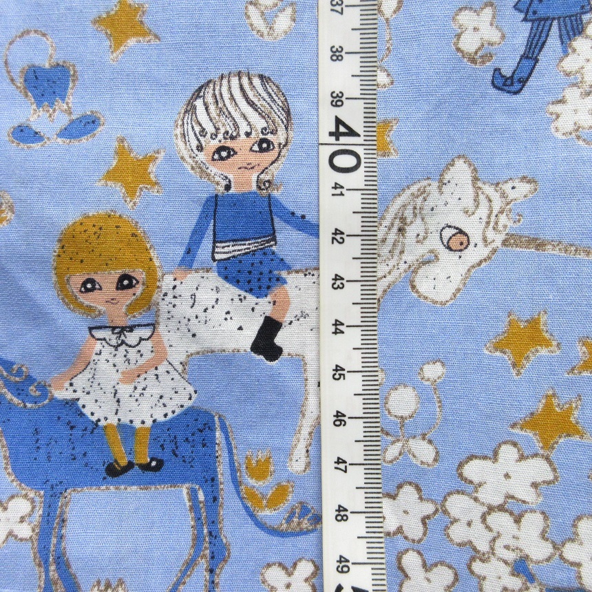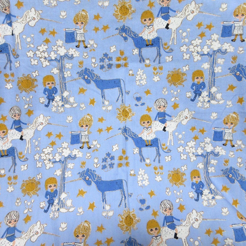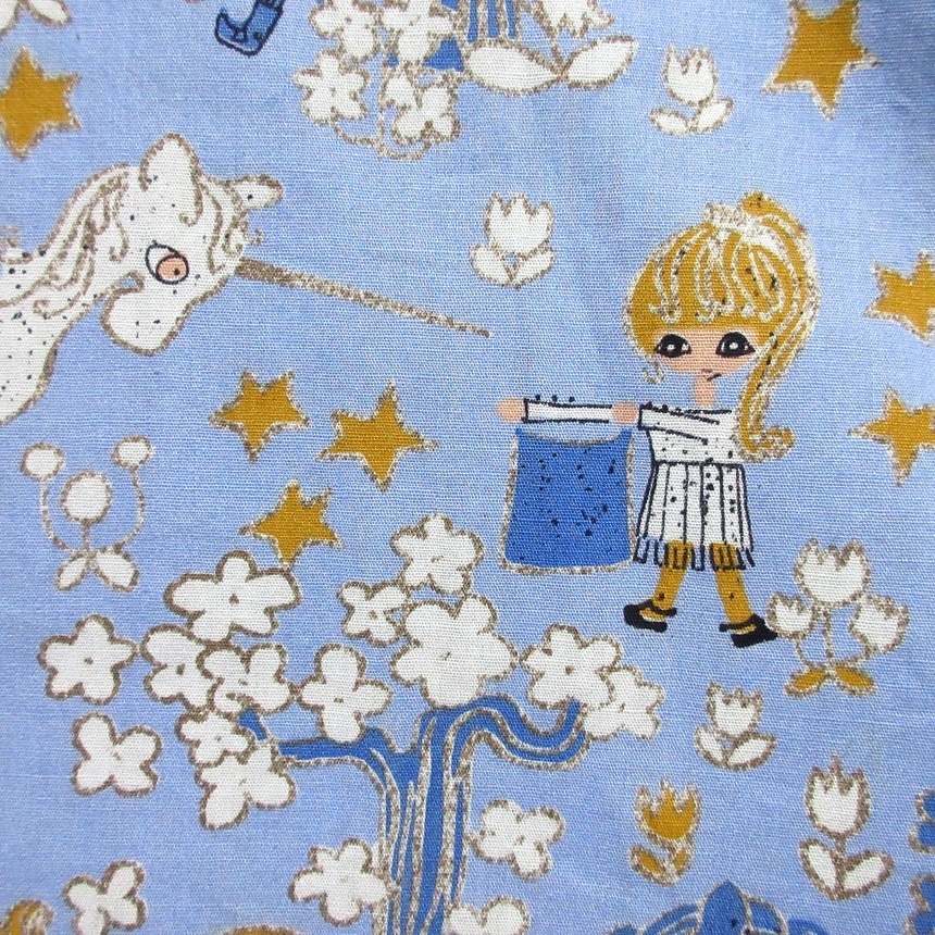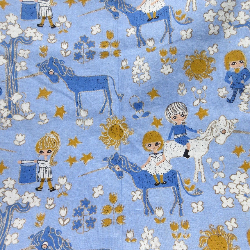 ★Vtg//ユニコーンと子供花や星。40’s~50’s珍しいレアな絵柄です。バッグや巾着 入園入学準備布小物などに。