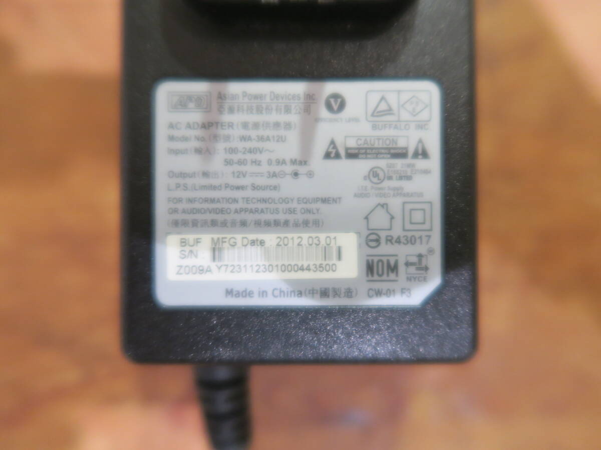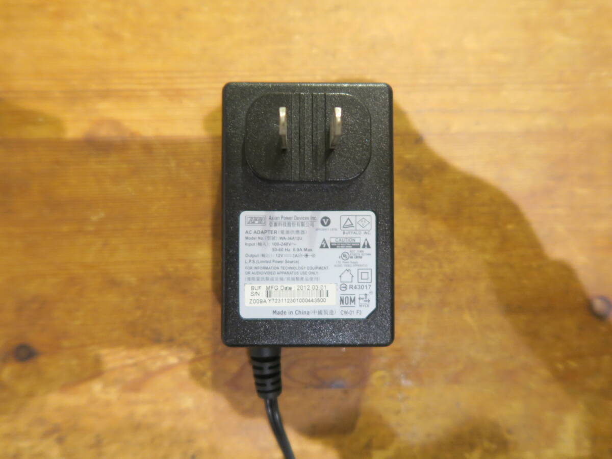 バッファロー ACアダプター WA-36A12U(12V 3A、センターピン無し)中古品です。(写真に写っているものが全てです。)