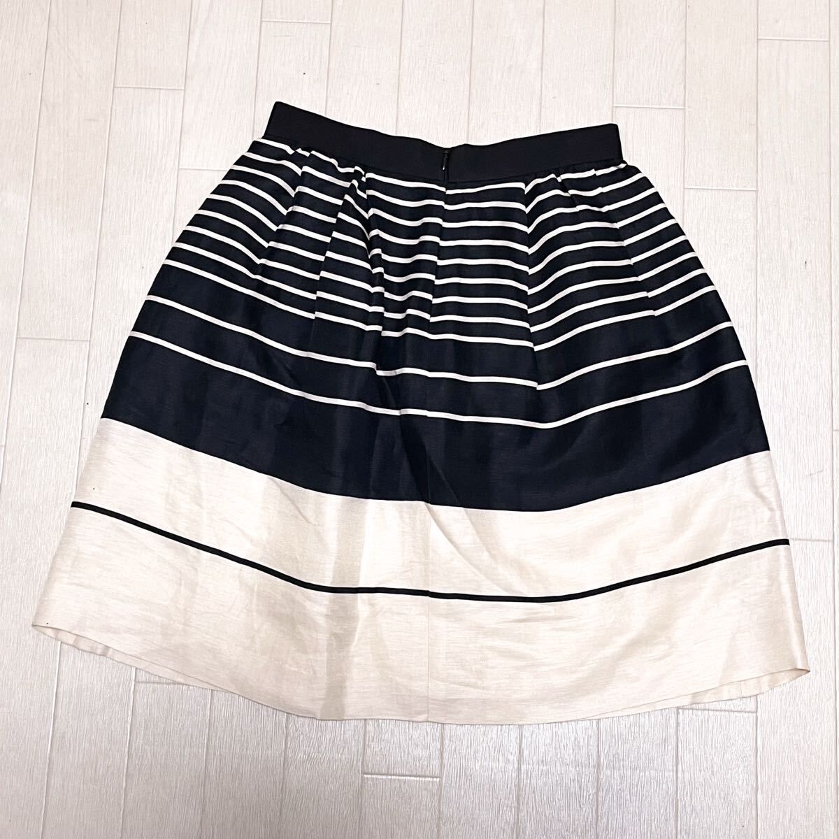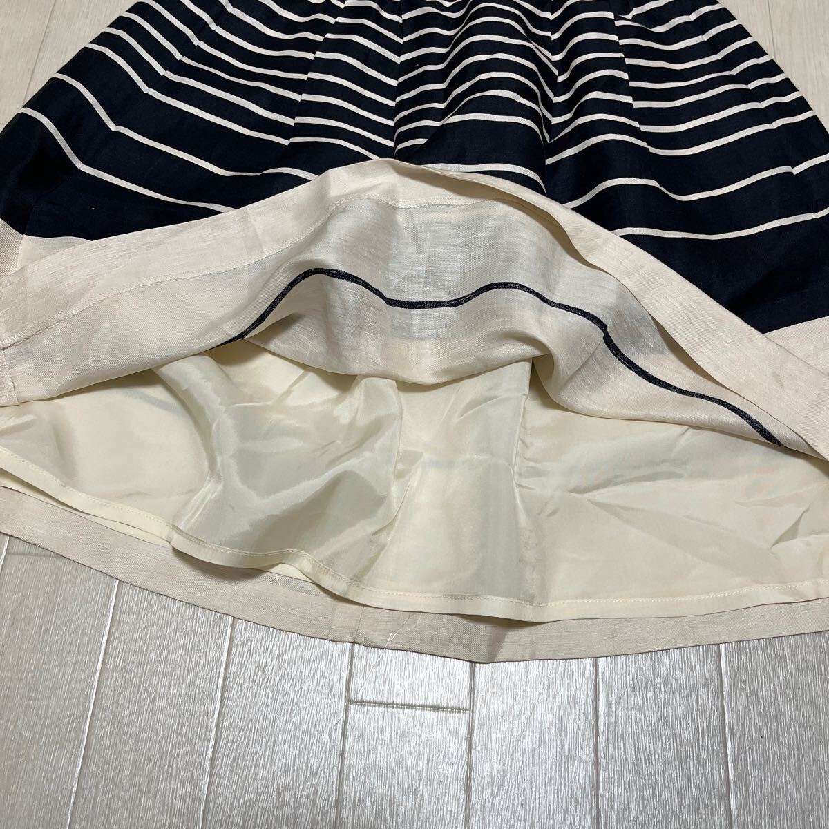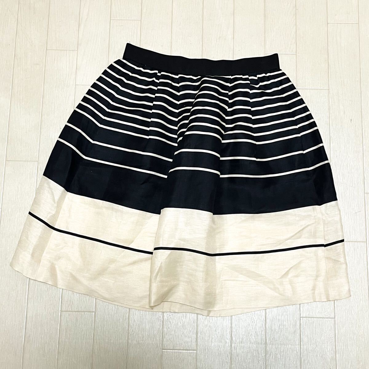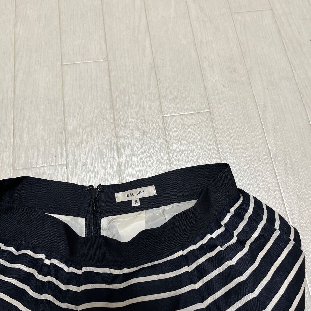 和729★ BALLSEY ボールジー フレアスカート シルクリネン ボーダー カジュアル 36 ブラック ベージュ レディース
