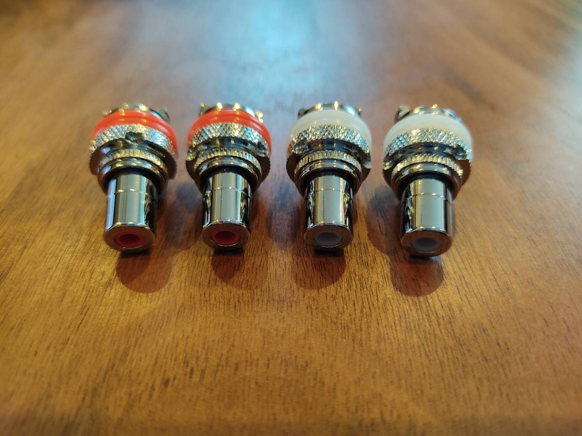 | 商品説明 | ●ご覧いただきまして、ありがとうございます● 純銅 ロジウムコート RCAジャック ハイエンド 新品 4個セットの出品です。 ・接線方法はハンダ式で、リップ(ホット)部分は線材からの信号を正確に伝える純銅無メッキリップになります。 ・レッド・ホワイトラインの各2本で、4個セットになります。 品名: 純銅 ロジウムコート RCAジャック ハイエンド 仕様: 最大全長約 32mm 最大外径約 16.5mm 締め付けネジ径 9mm(M9) 絶縁リング下孔径約 11mm 状態: 新品(加工時に出来た小傷等につきましてはご了承ください) 本商品の発送につきましては、同梱発送にも対応しております。 |