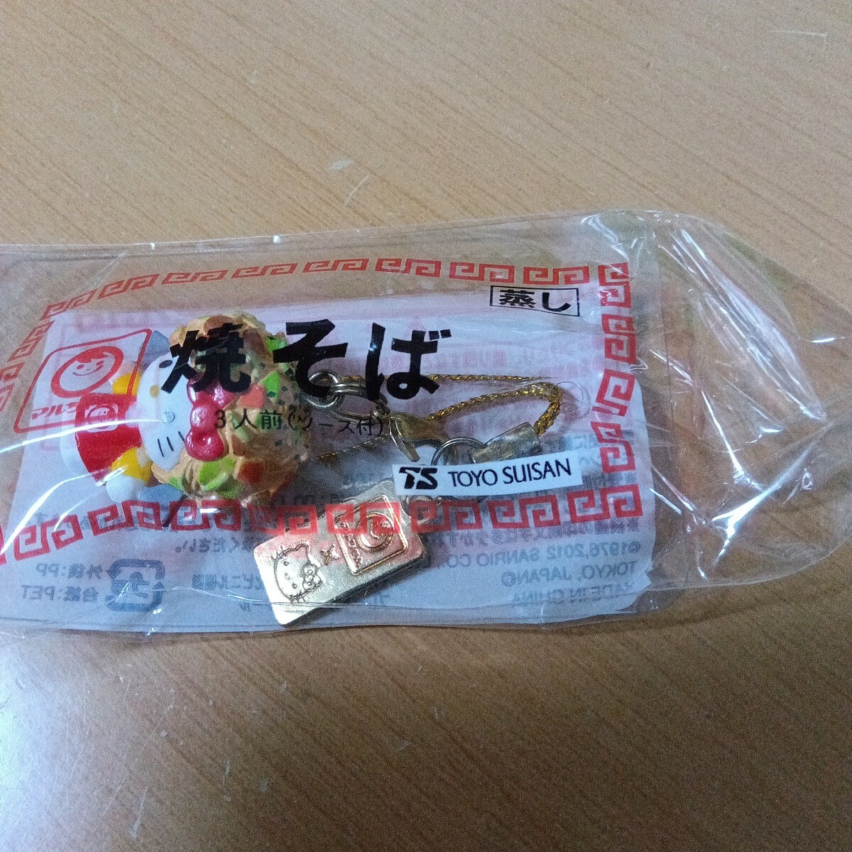 サンリオ HELLO KITTY と 東洋水産 マルちゃん焼きそばのコラボ キーホルダー 根付ストラップ コレクション 未使用 非売品 キティちゃん