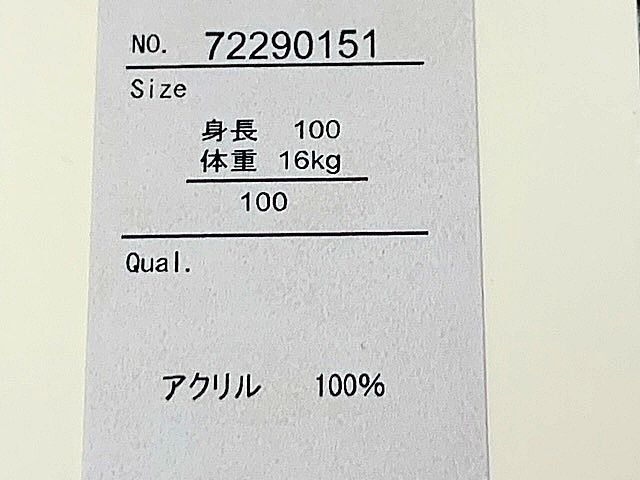 ●写真がすべてになります。タグ付き新品。タグには【身長100 体重16㎏ アクリル100% 】とあります。