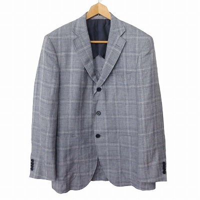 TEIJIN MEN'S SHOP 銀座 テイジメンズショップ エルメネジルドゼニア社生地 ジャケット テーラード チェック 48L 紺 メンズ