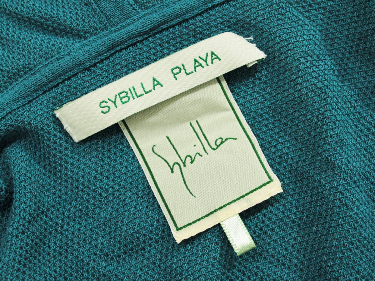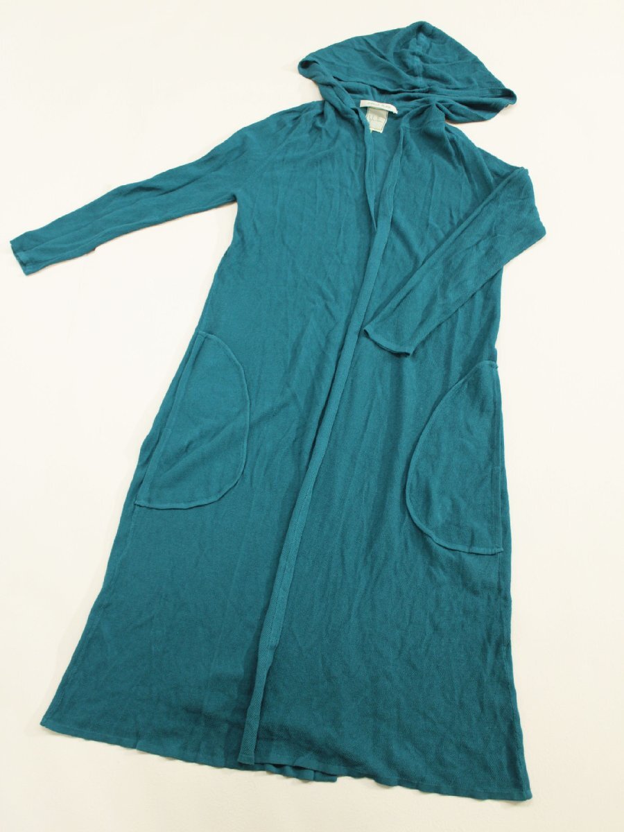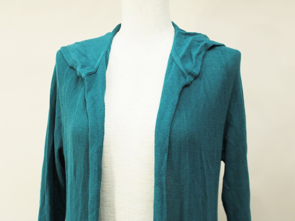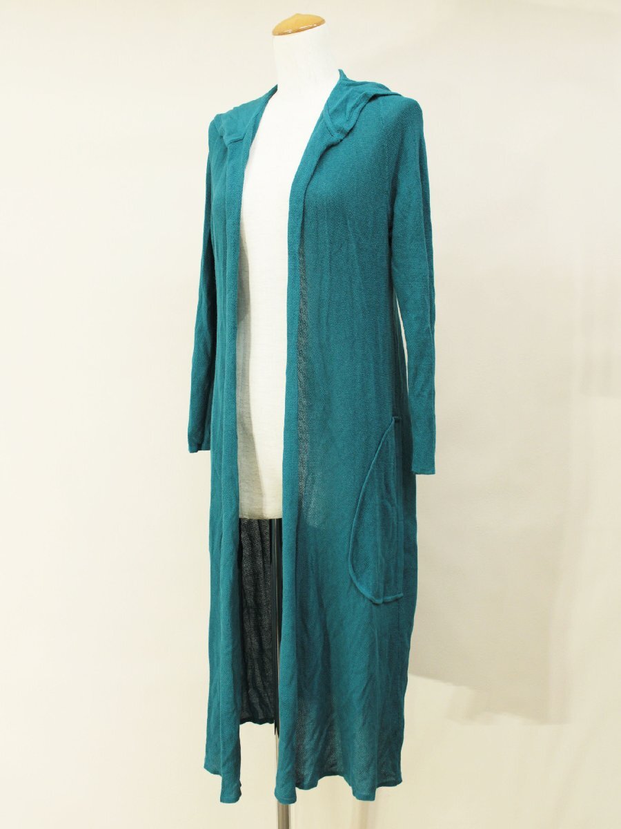 シビラプラヤ 洗える/コットンニット羽織フーデットロングカーディガン定価3.9万円青緑M am591