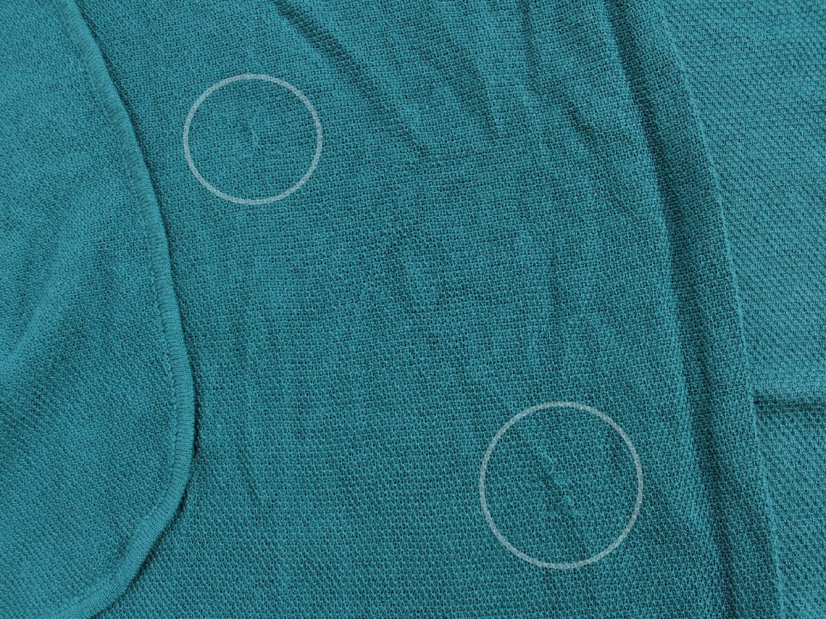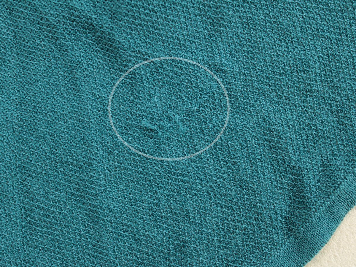 ・左袖上、後ろ左裾上、後ろ右下等全体的に所々ほつれあり(画像6,7,8枚目)