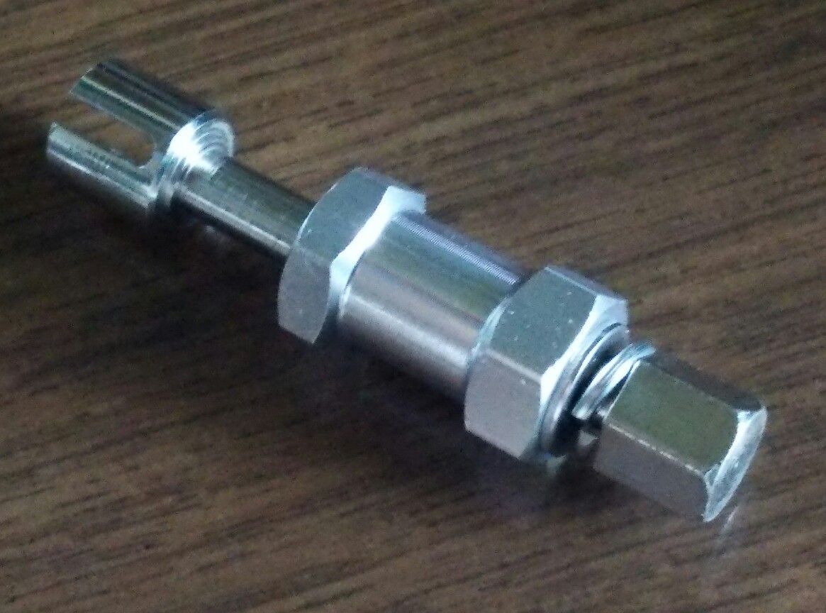 六角対辺12㎜の内ねじ特殊ボルト(チューブナット)固定式1/10標準アクスル汎用ワイドハブ正規品のボルト(ナット)首下=胴体長は、+15㎜のワイドハブなら15㎜、+20㎜なら20㎜、つまり、+ワイド長=ボルト(ナット)首下長が基準で、アクスルシャフトねじ有効長9㎜~という非常に限られた範囲でスプリングワッシャ収縮(約3→1.5㎜)も含めた全ての取り付け動作に確実に対応して、かつ十分な強度を保つ為には、上記プラスマイナス1㎜(+15㎜は14~16㎜、+20㎜は19~21㎜)が正常に取り付けられる許容範囲です。
