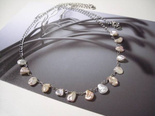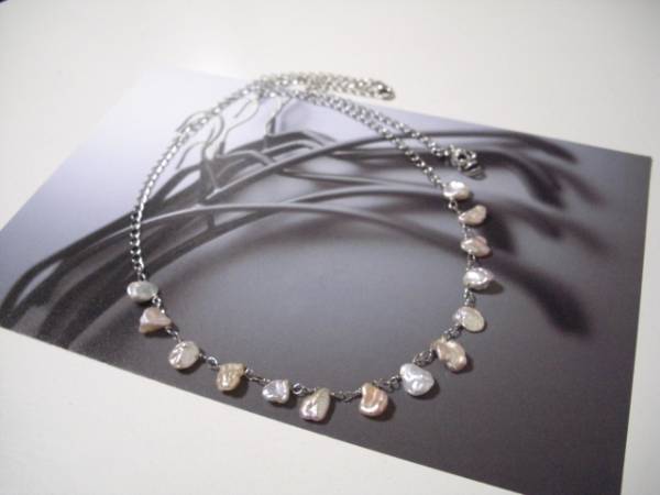 シモーヌの宝石箱・・シリーズです♪白雪姫の首飾り・・繊細な芥子パールを繋いでロマンチックなネックレスです♪8×11ミリ位の芥子パールは花びらのように繋いで合わせやすいデザインです♪長さは65センチ位で調節自由です♪お揃いのネックレスやブレスレットやピアスも出品しています♪シンプルで長く着けていただけるデザインを考えて作りました!ハンドメイドをご理解頂いてノークレーム、ノーリターンでお願いします
