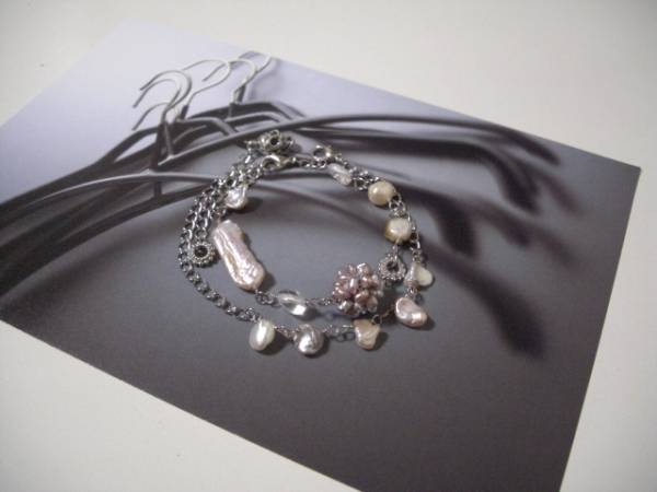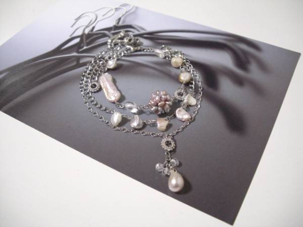シモーヌの宝石箱・・シリーズです♪白雪姫の首飾り・・繊細な淡水パールや芥子パール、水晶を集めてロマンチックなブレスレット3点セットです♪画像のように色々な組み合わせで楽しんでいただけます♪16ミリ位の淡水パール玉のブレスレットは8ミリから23ミリ位までのポテトやラフカット、ステック、バロックや芥子などの淡水パールや水晶を合わせました♪長さは全長23センチ位で調節自由です♪華奢なチェーンのトップには15×10ミリ位の淡水パールのドロップや4ミリのランダムカットの水晶やデザインリングを合わせました♪長さは16センチ+アジャスター6センチで最長22センチ位です♪トップは4センチ位です♪8×11ミリ位の芥子パールは花びらのように繋いで合わせやすいデザインです♪長さは23センチ位で調節自由です♪それぞれ単品やネックレスやピアスも出品しています♪シンプルで長く着けていただけるデザインを考えて作りました!ハンドメイドをご理解頂いてノークレーム、ノーリターンでお願いします |