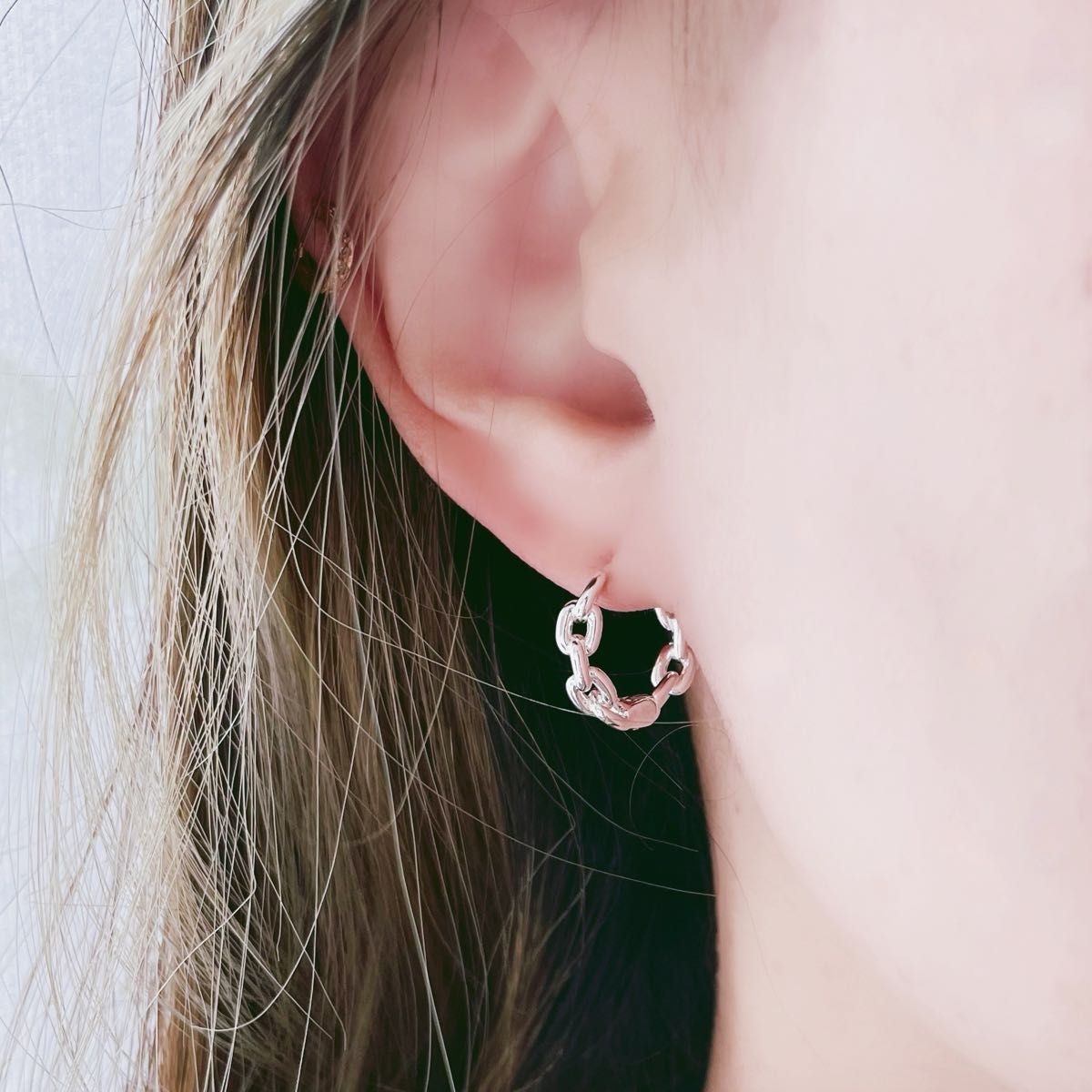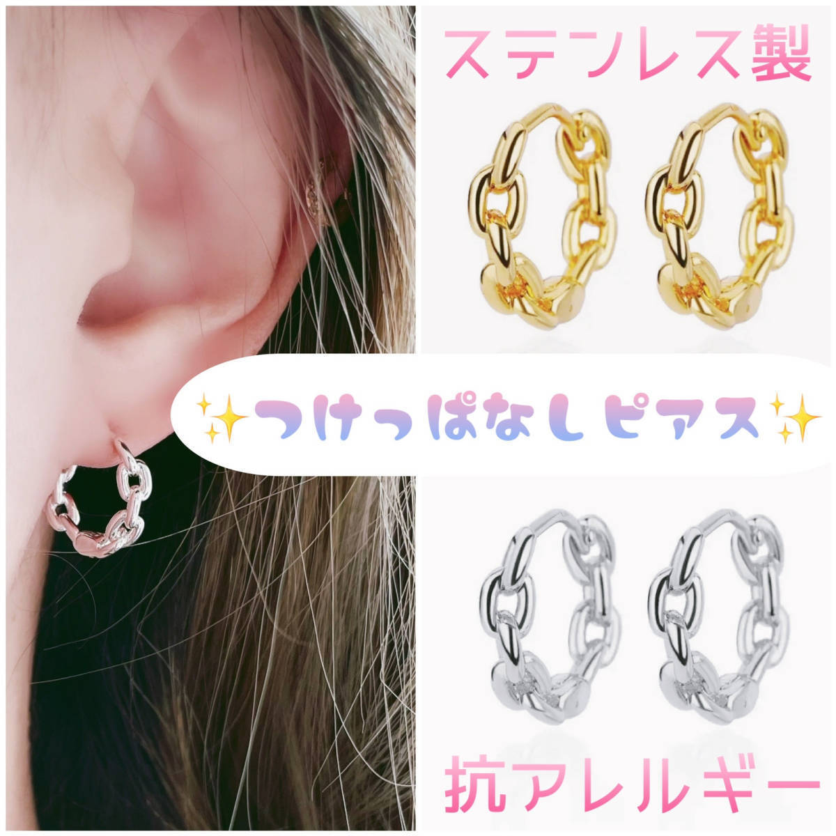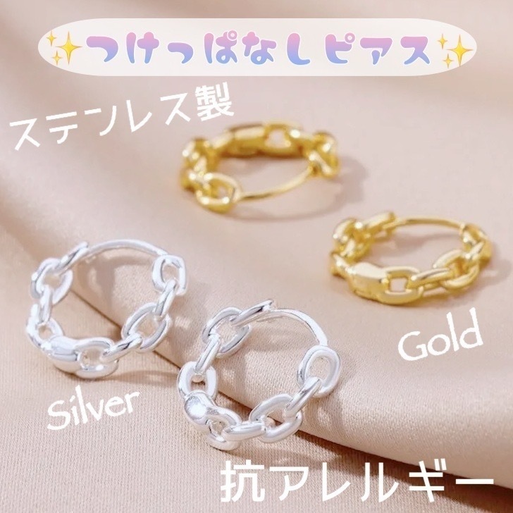 送料無料★akeeeeey★【アレルギー対応 】ステンレス☆つけっぱなしピアス ミニフープ チェーン_F6|つけっぱなしOK チェーンフープピアス