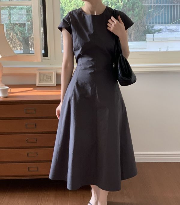 ★★★レディース ワンピース フレアスカート ラウンドネック ハイウエスト EX05