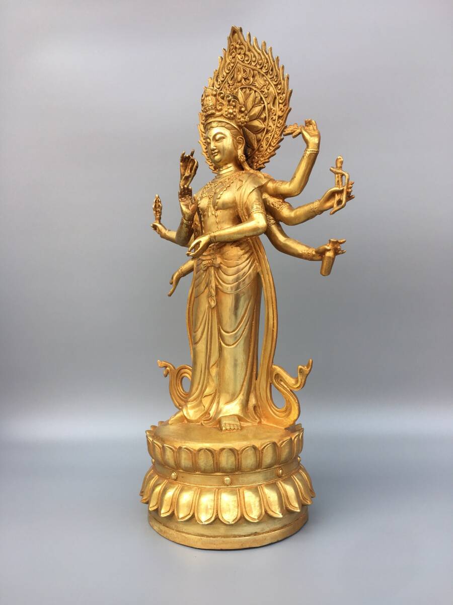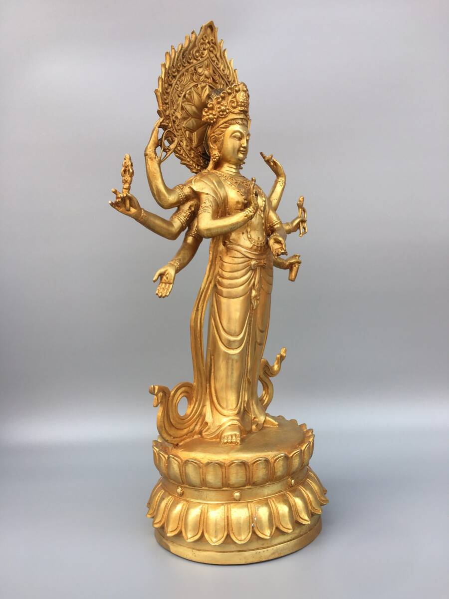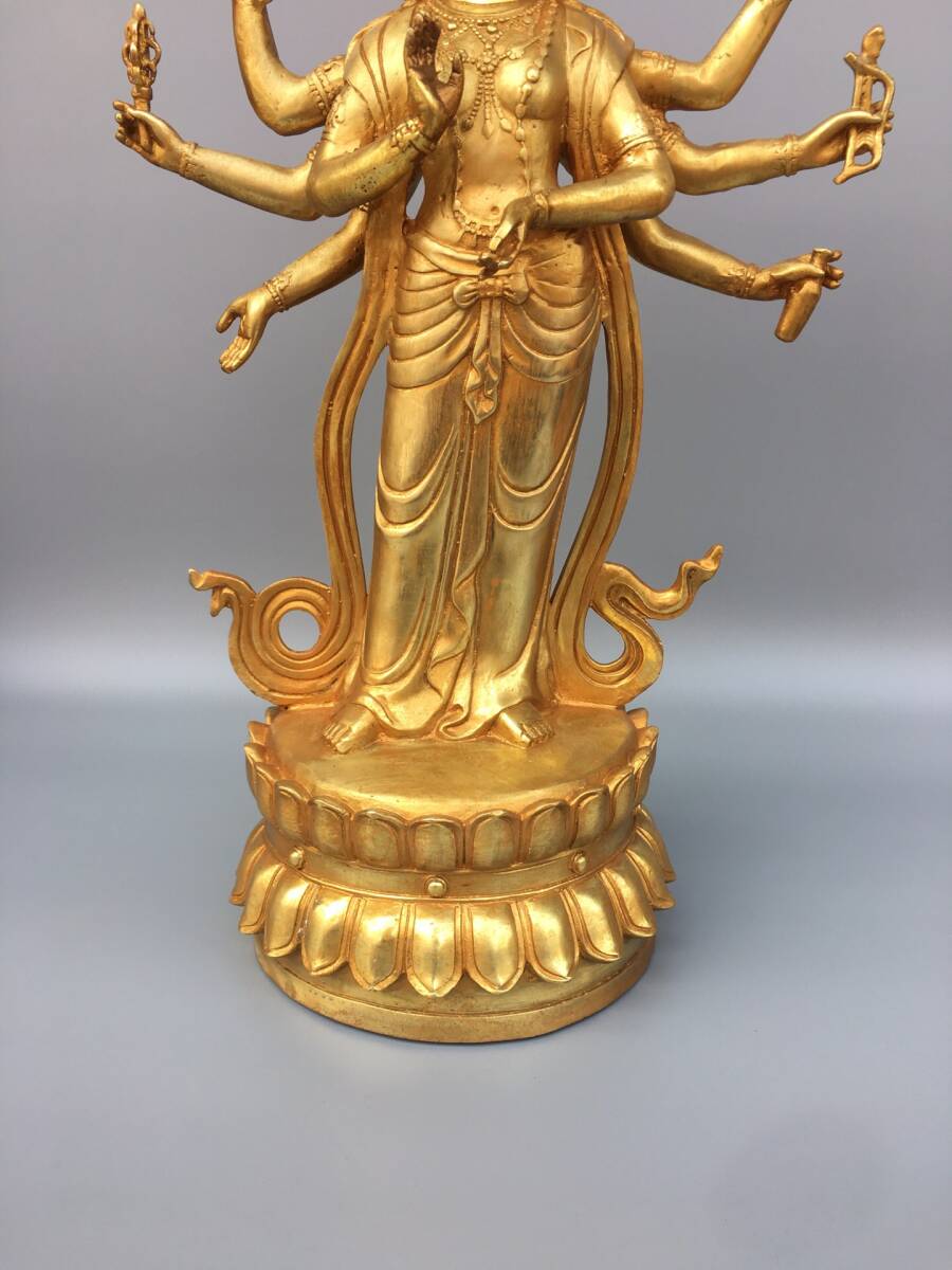 | 【蔵友館蔵品・銅製・塗金・八臂觀音像・仏教古美術・供養品】・希少珍品・置物・賞物・中国時代美術 |
