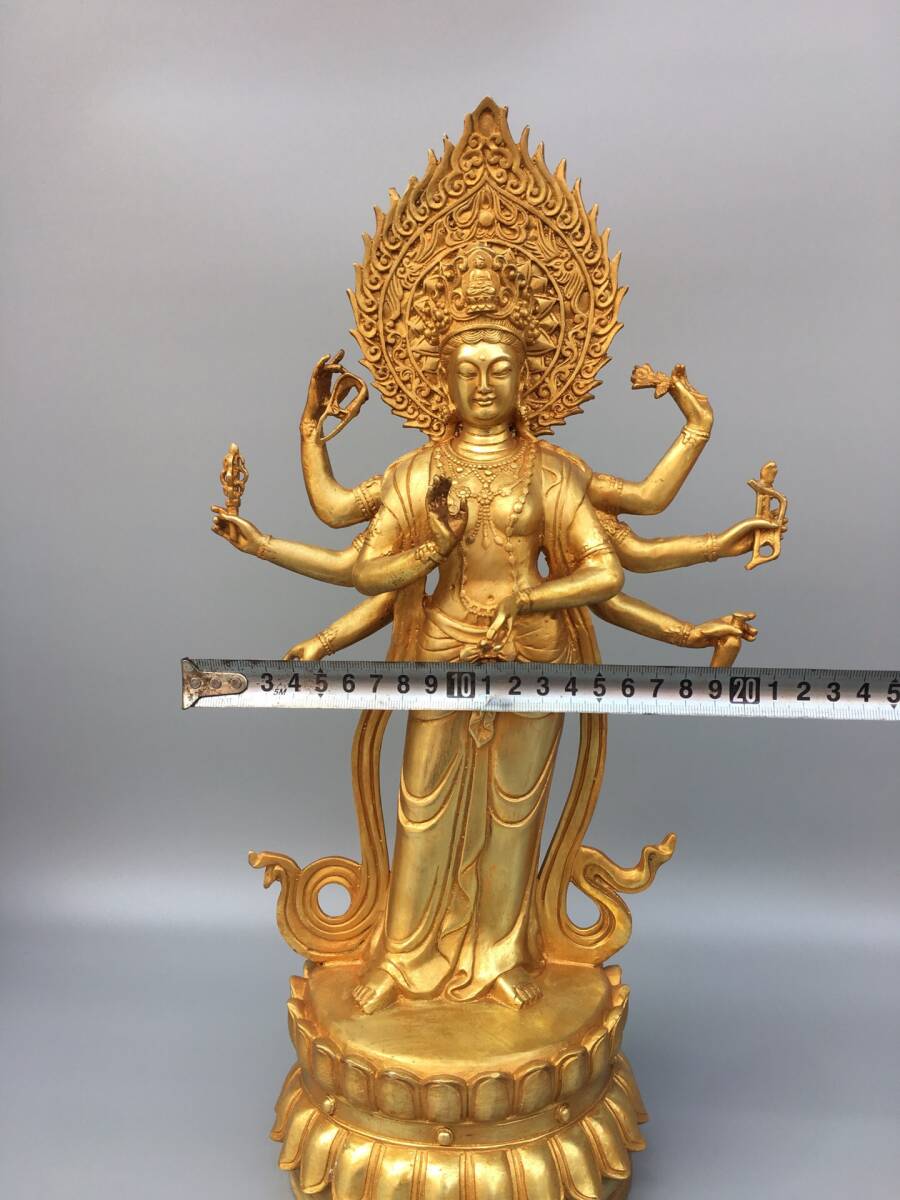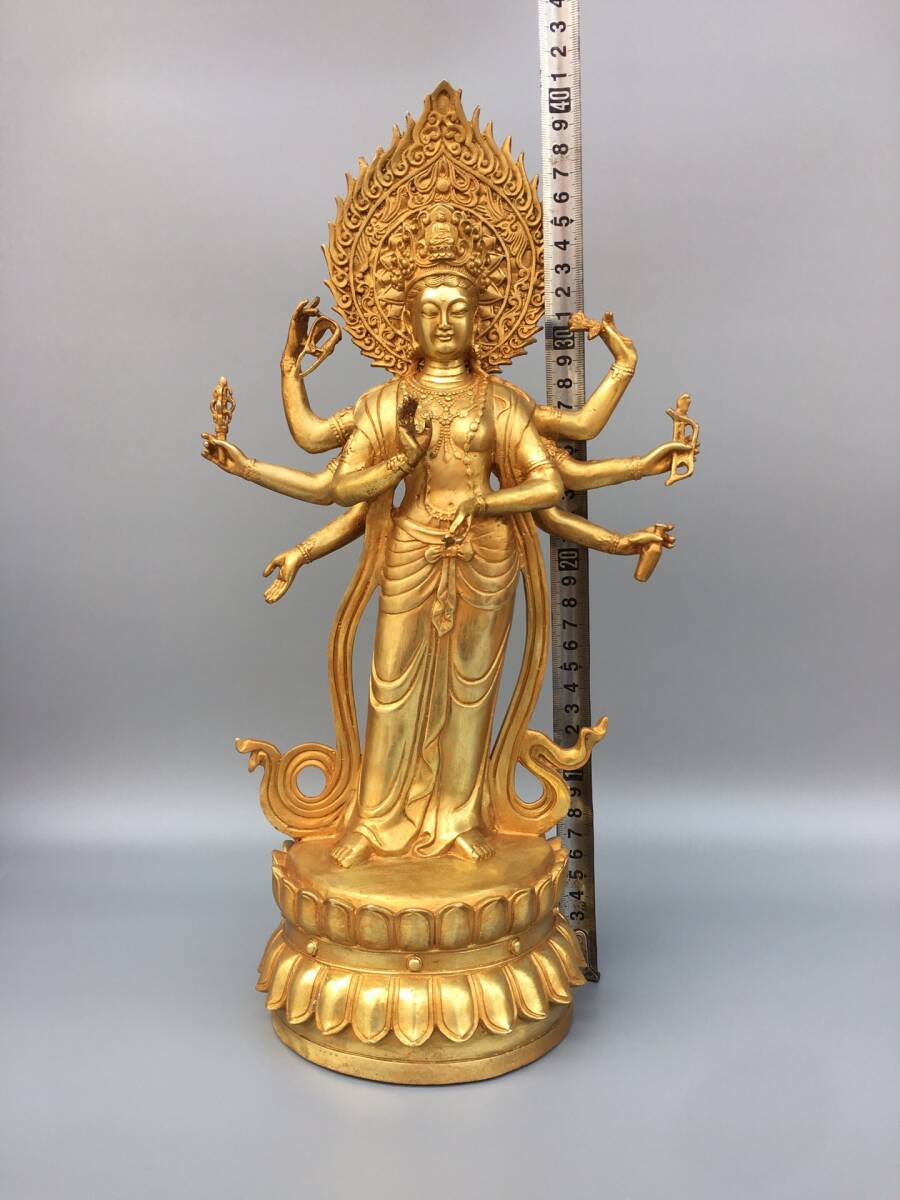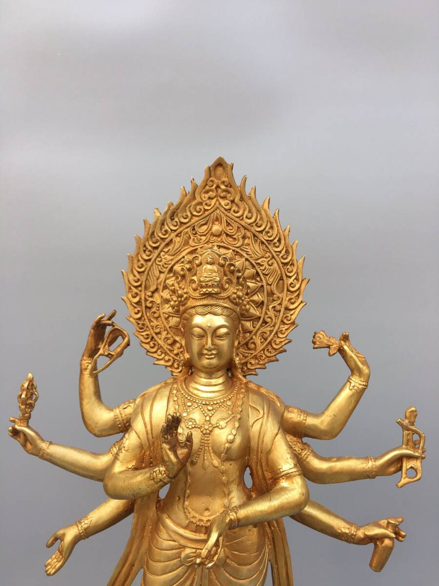 | 【蔵友館蔵品・銅製・塗金・八臂觀音像・仏教古美術・供養品】・希少珍品・置物・賞物・中国時代美術 |