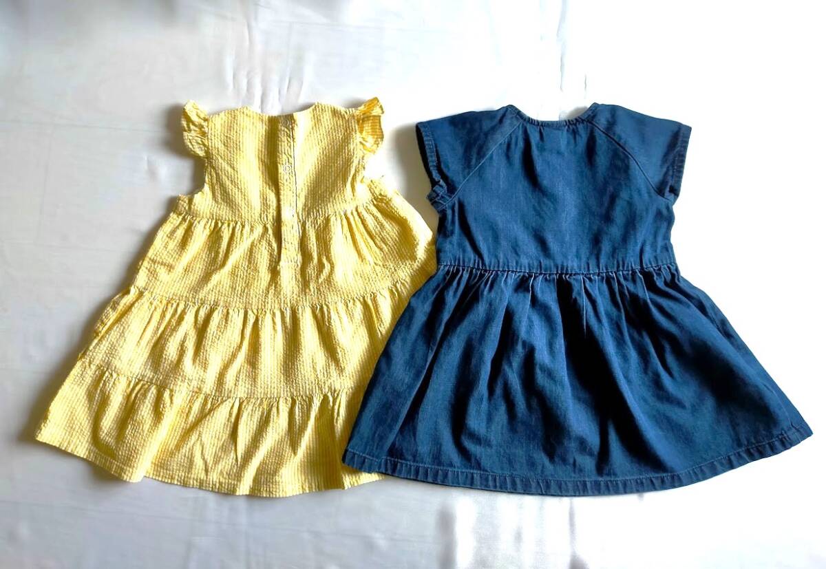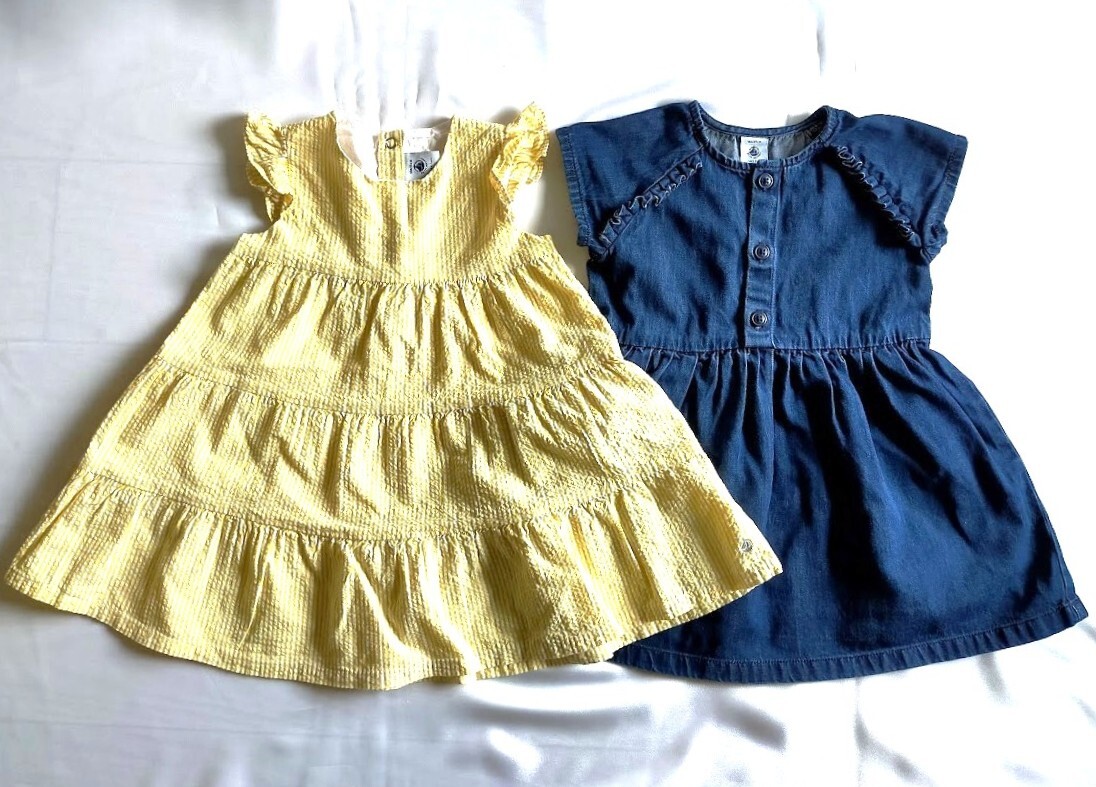 【プチバトー PETIT BATEAU/子供服】サイズ:1歳半前後用 / ワンピース(サッカー生地、デニム生地)2枚 / 素材:綿100% ★女児