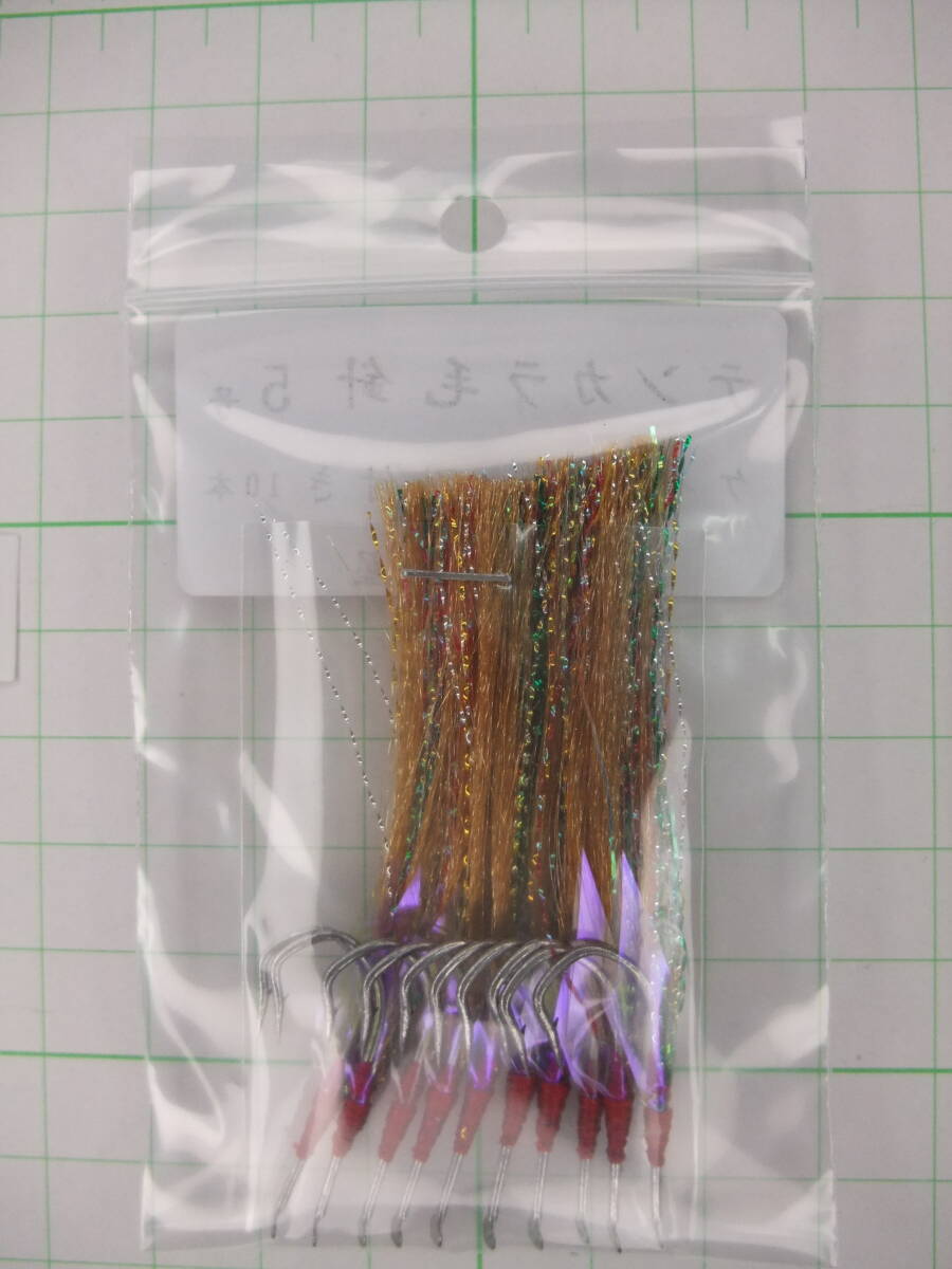 5TK テンカラ毛針5号 イソ縄毛針 オキメバル  茶フラッシャー ケイムラシート付き 10本セット