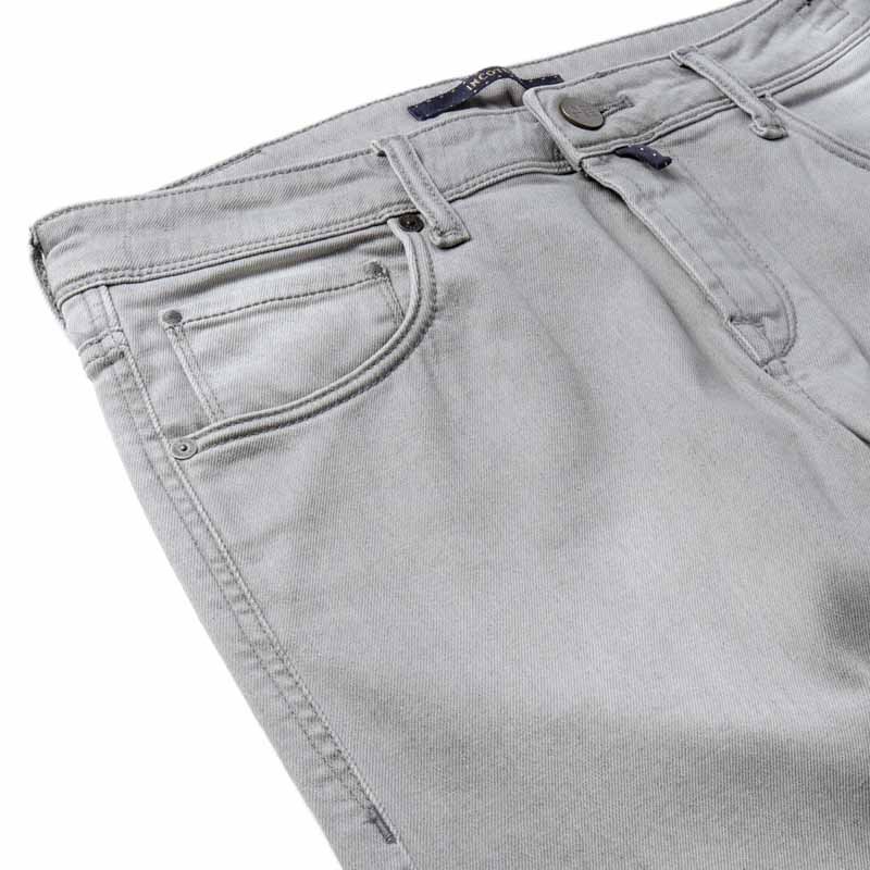・しっかりとブリーチされた、都会的でモダンな雰囲気のライトグレー(アイスグレー)のストレッチデニム。