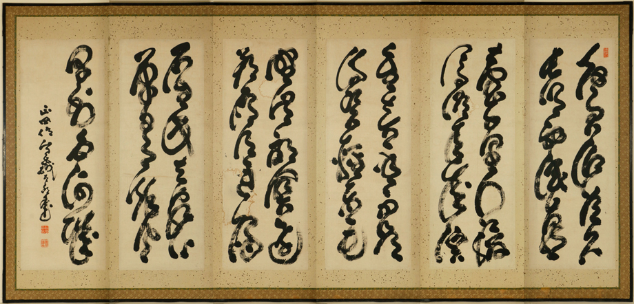 総丈サイズ…各 横 378 × 縦 178 cm 紙本 状態…微少傷ミ 表具少虫穴 本紙シミ 金具・裏少傷ミ 【印刷ではありません】 【真作】 山岡鉄舟 幕末~明治の剣術家・政治家。江戸生。名は高歩、通称は鉄太郎。千葉周作の門に入り、のち無刀流を開く。また槍術を山岡静山に学び、その妹と結婚。山岡家を継ぐ。義兄高橋泥舟らと江戸の治安維持にあたる。維新後は静岡県権大参事・茨城県参事等を歴任。幕末三舟の一人。明治21年(1888)歿、52歳。 |
