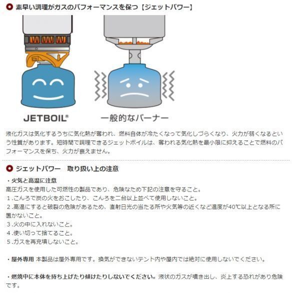 ※ジェットボイルには、必ず専用のジェットパワーをご使用ください。