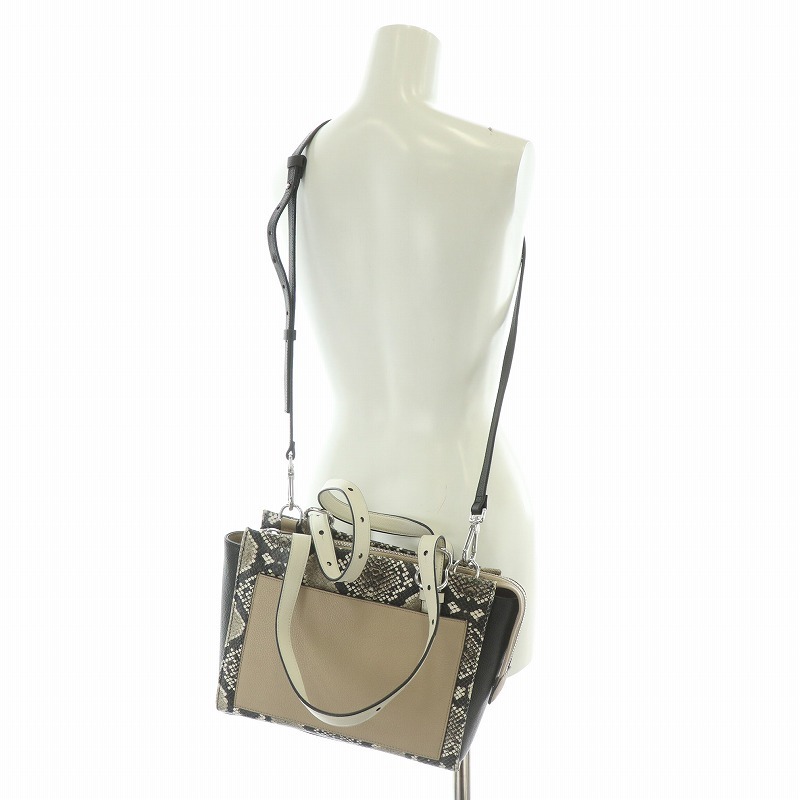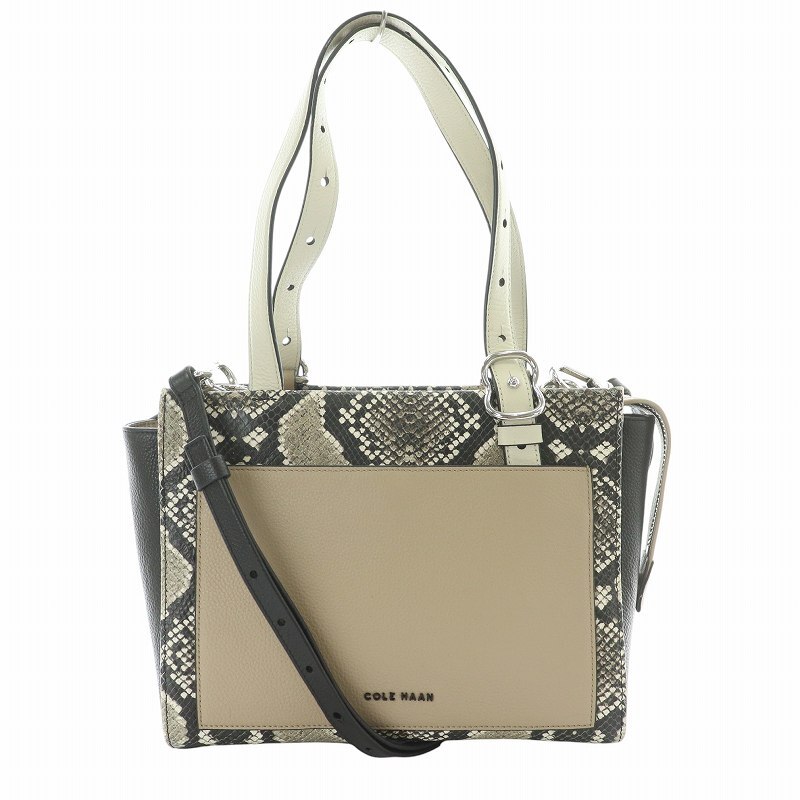 コールハーン スモール 3 in 1 トート スネークプリント 2WAY ショルダーバッグ ハンドバッグ レザー ポーチ付き ベージュ 黒 U06323