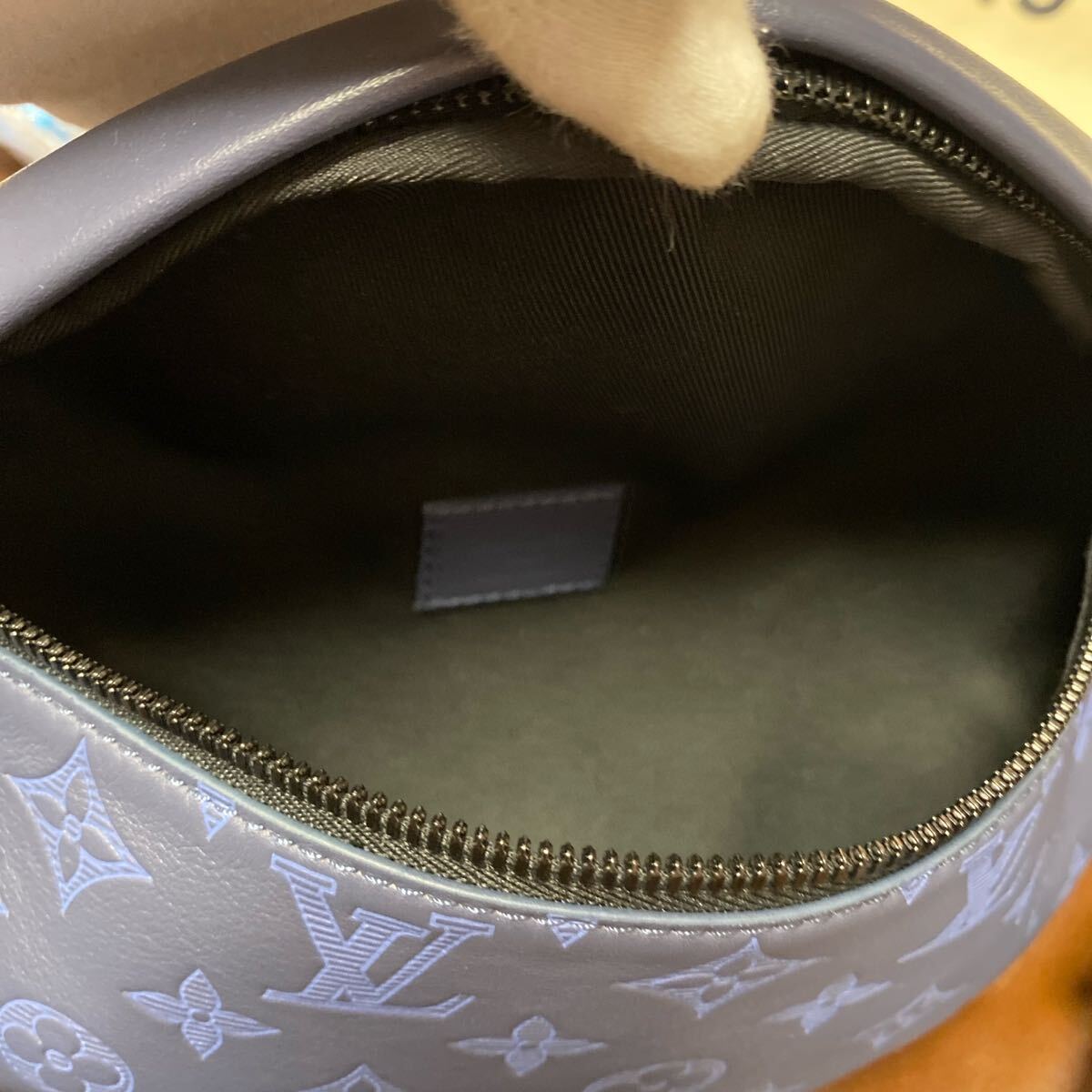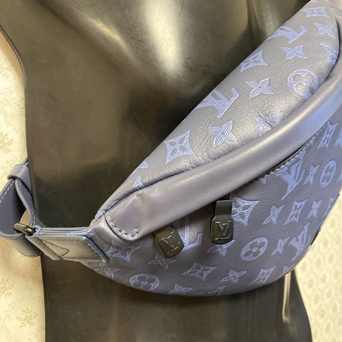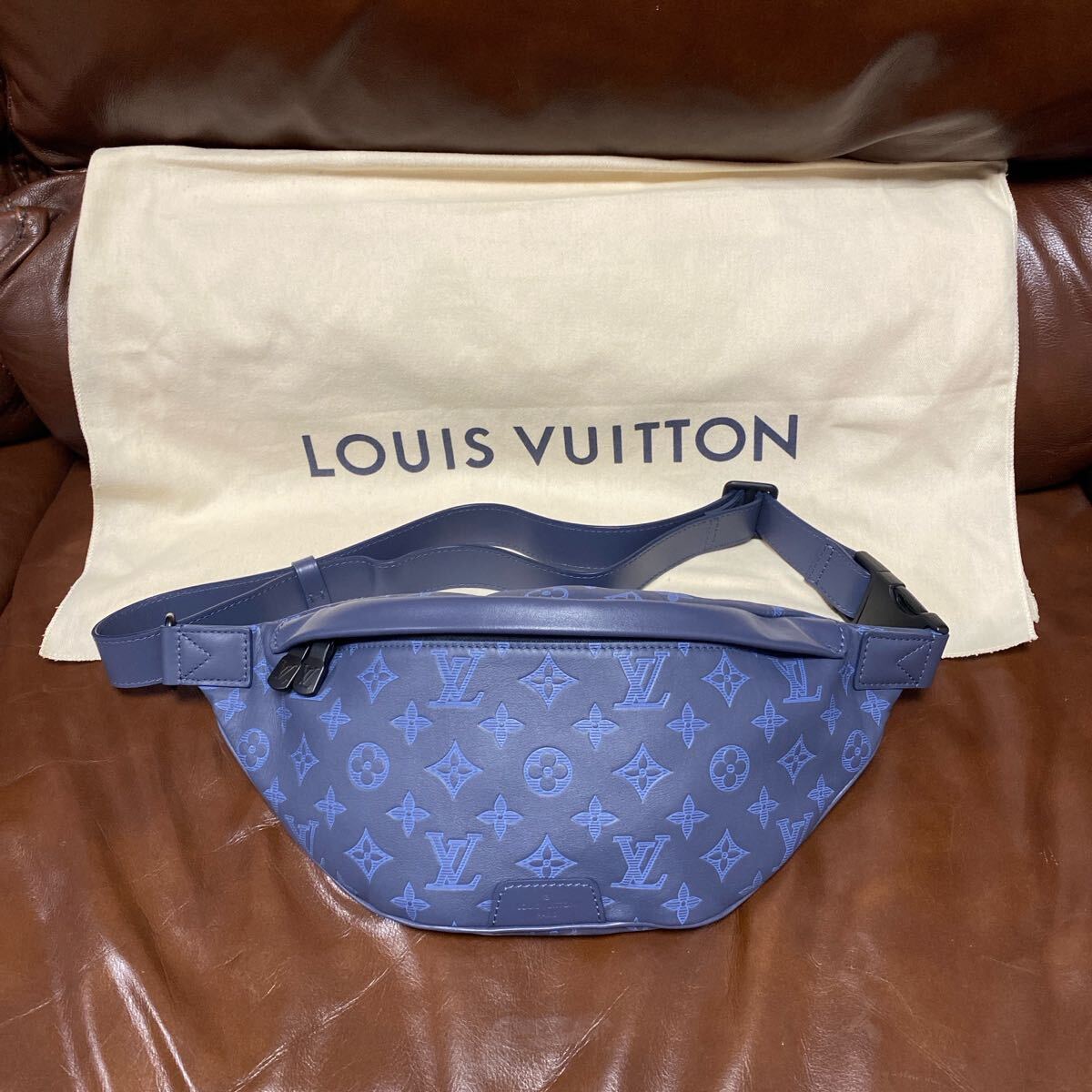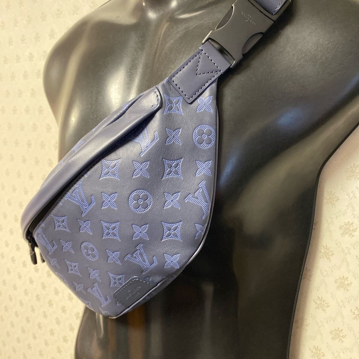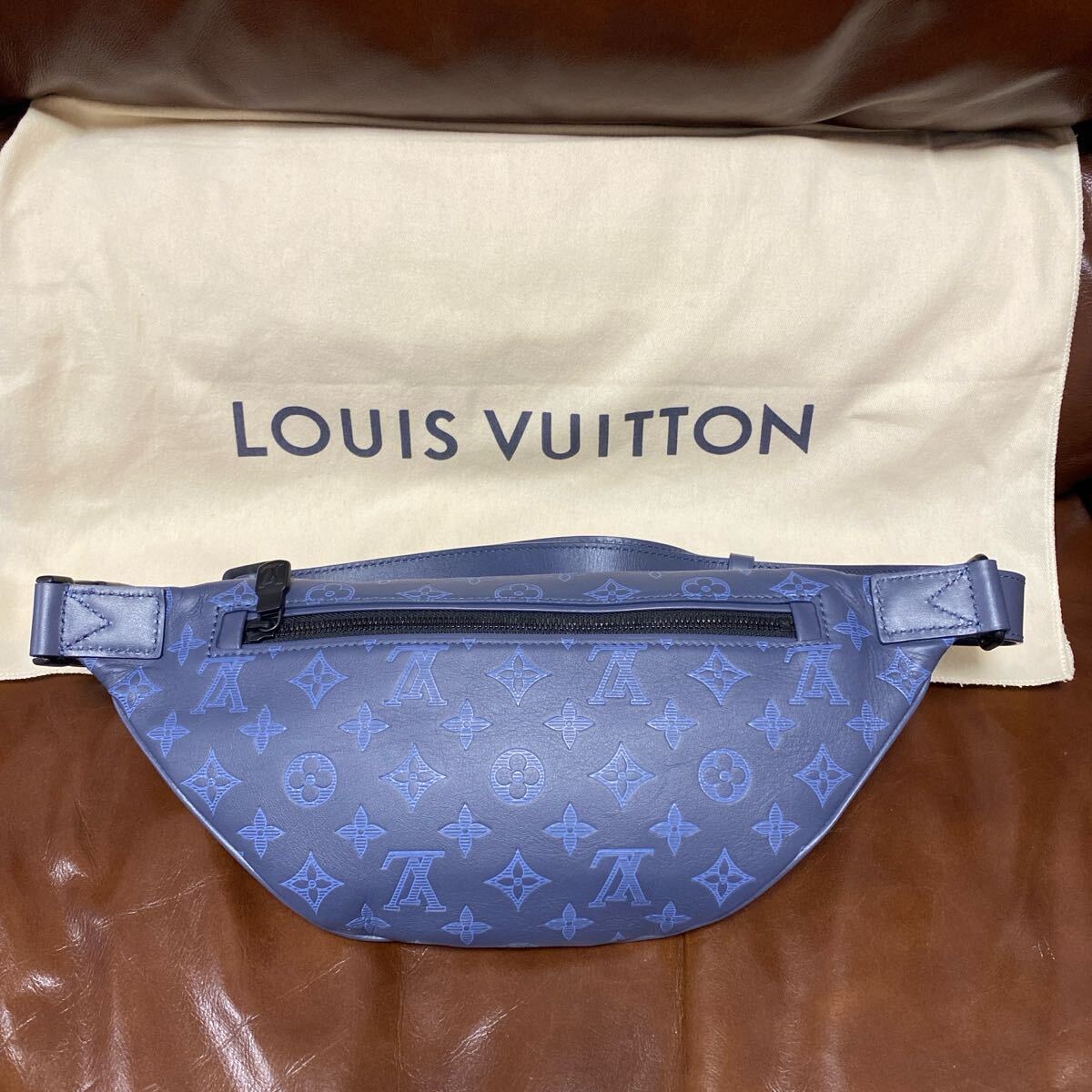 希少モデル/極美品 ルイヴィトン LOUIS VUITTON モノグラム シャドウ バムバッグPM ボディバッグ ネイビー カーフレザー