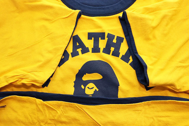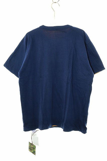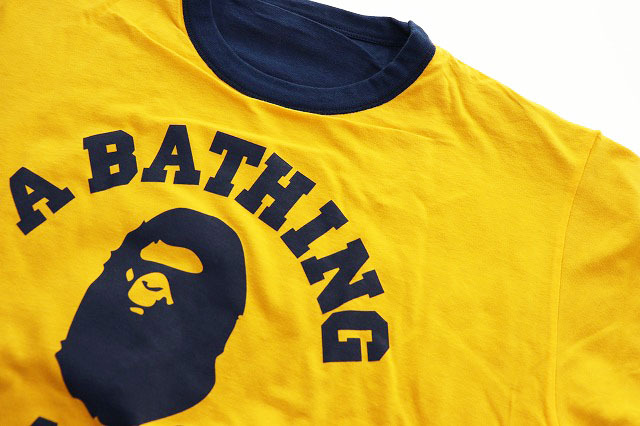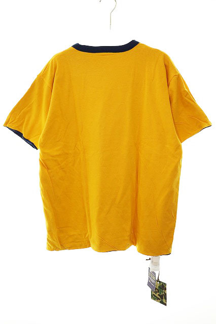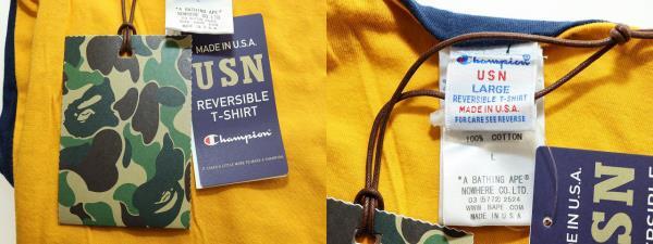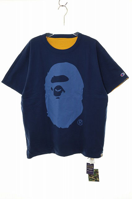 アベイシングエイプ A BATHING APE × CHAMPION REVERSIBLE BIG HEAD TEE YELLOW NAVY L USA製 チャンピオン コラボ カレッジロゴ リバーシブル ■250503
