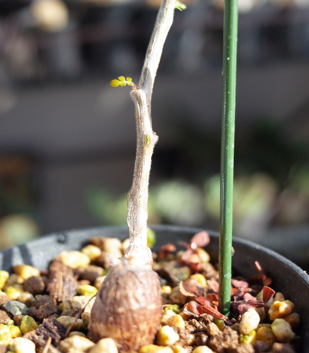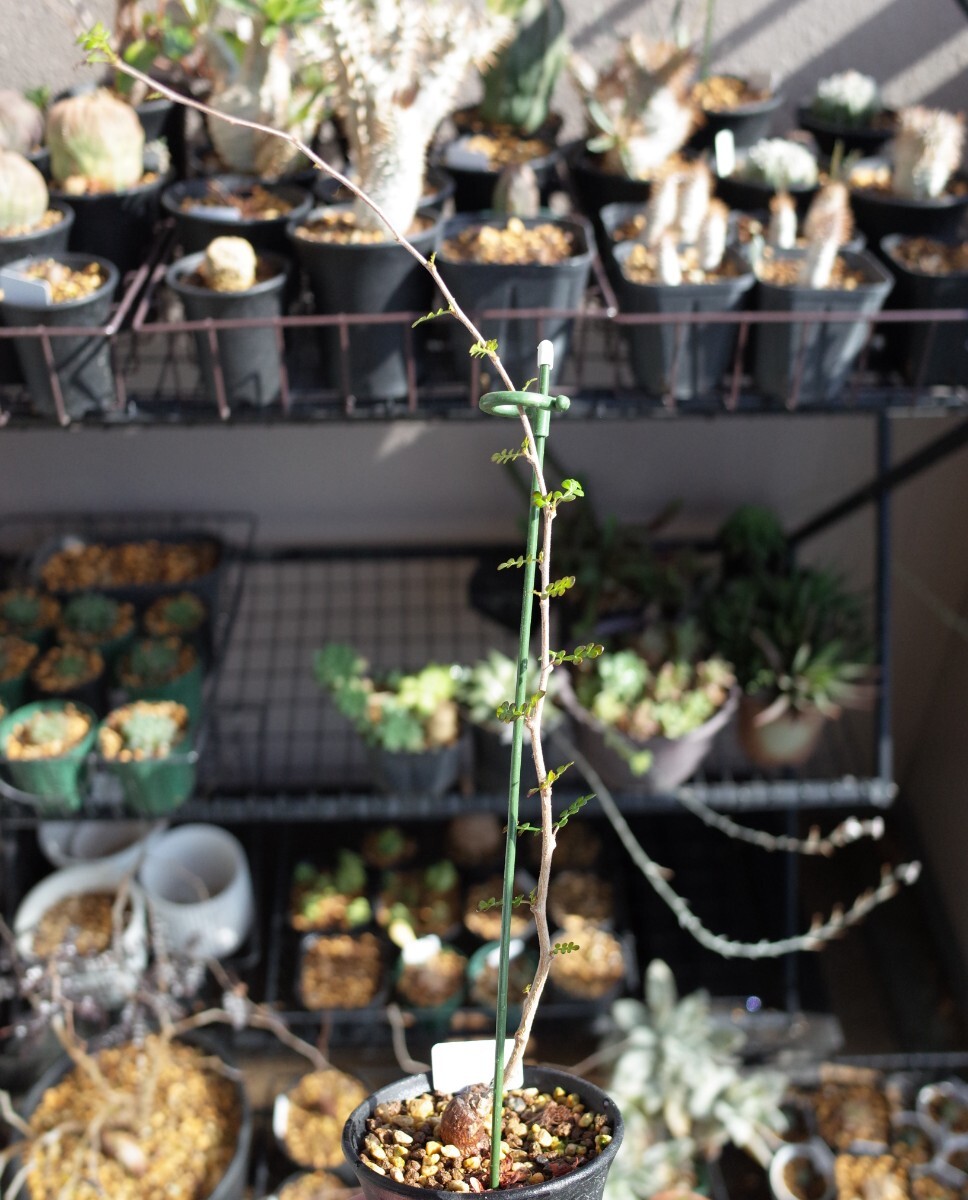 使用状況 :夏型コーデックスです。1、2年もすると幹が太り始め枝の展開が増えてきます。まっすぐ力強く育つのが特徴で、葉は小さく光沢がある可愛さとのギャップがたまらない魅力です。