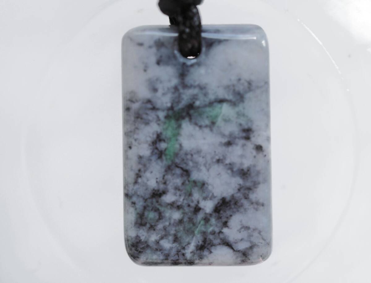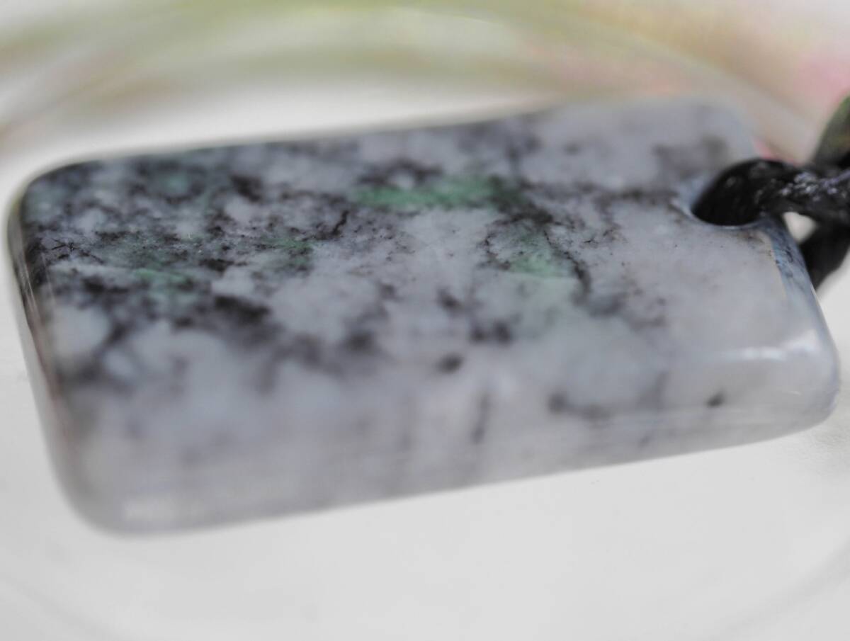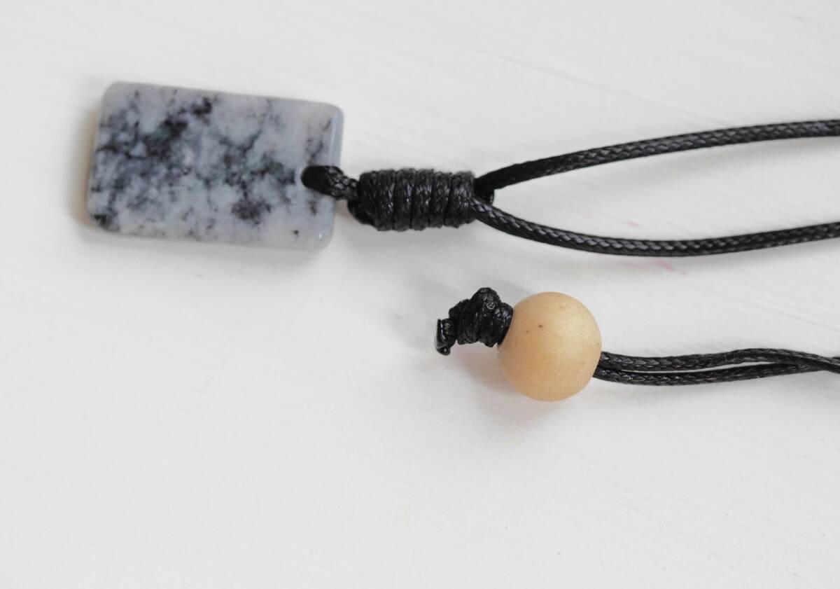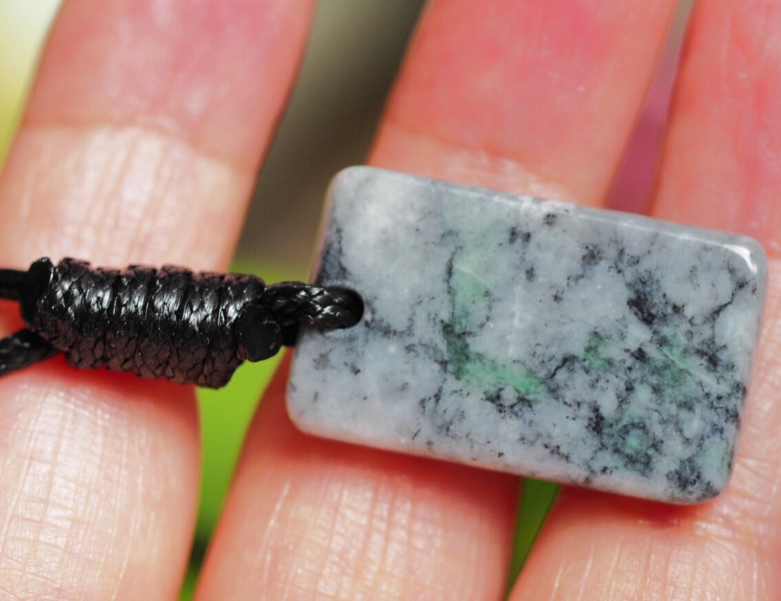 こちらはブラックグレーの糸魚川翡翠に紐ネックレスに仕上げております。