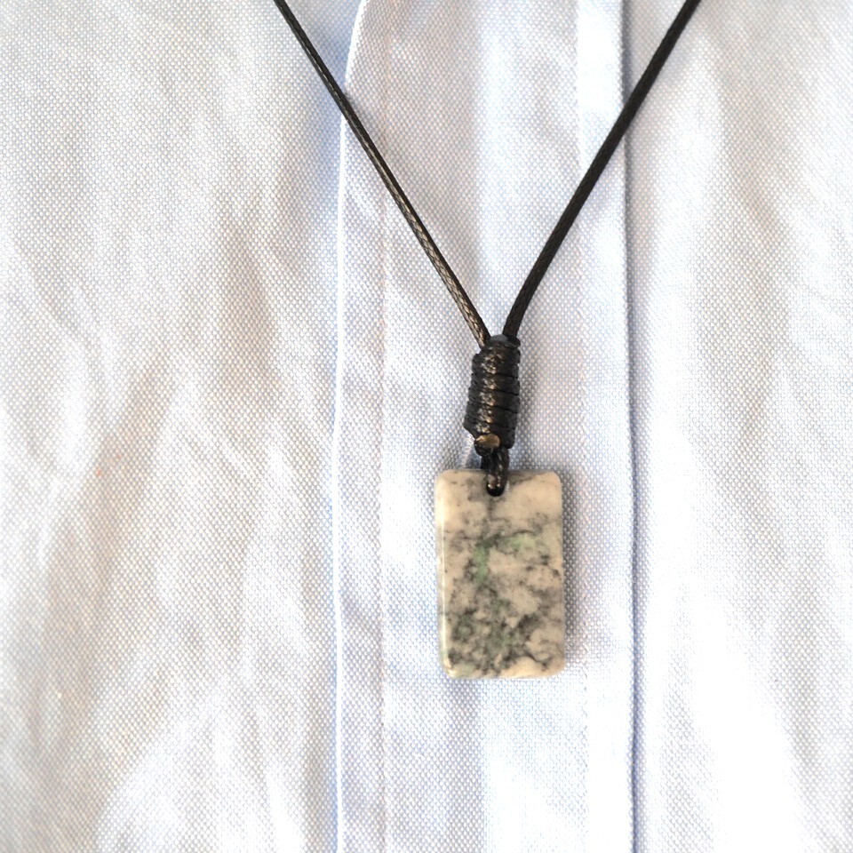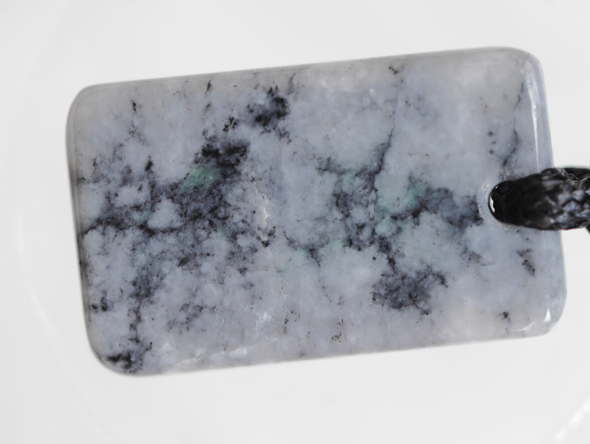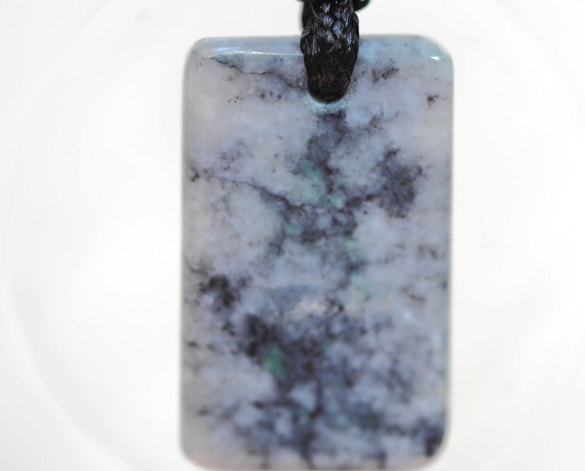 こちらはブラックグレーの糸魚川翡翠に紐ネックレスに仕上げております。