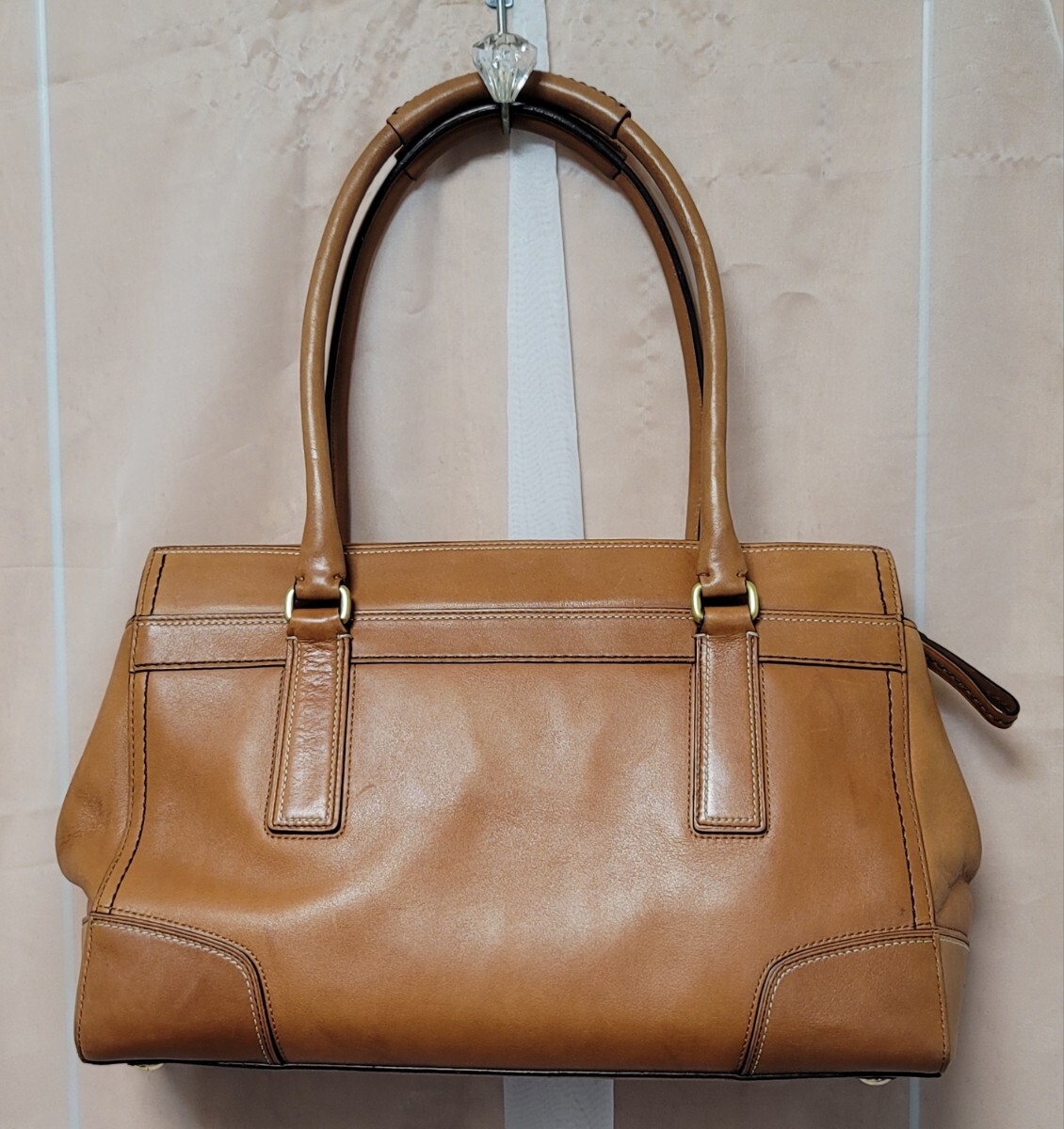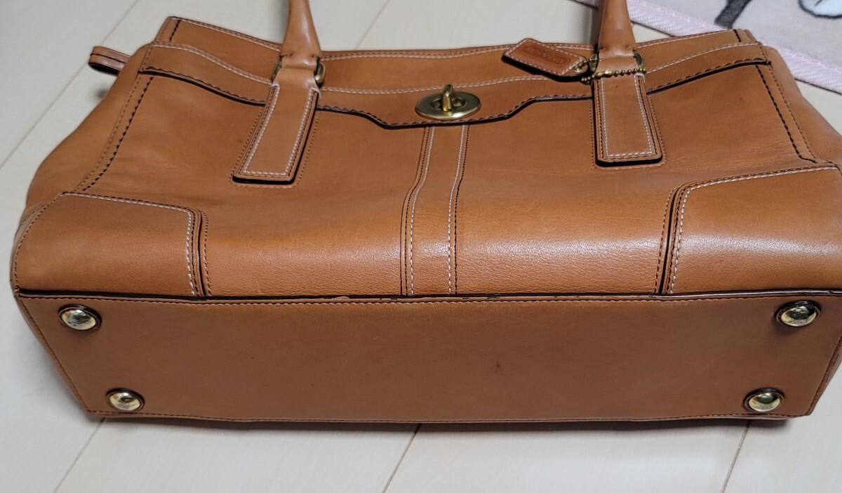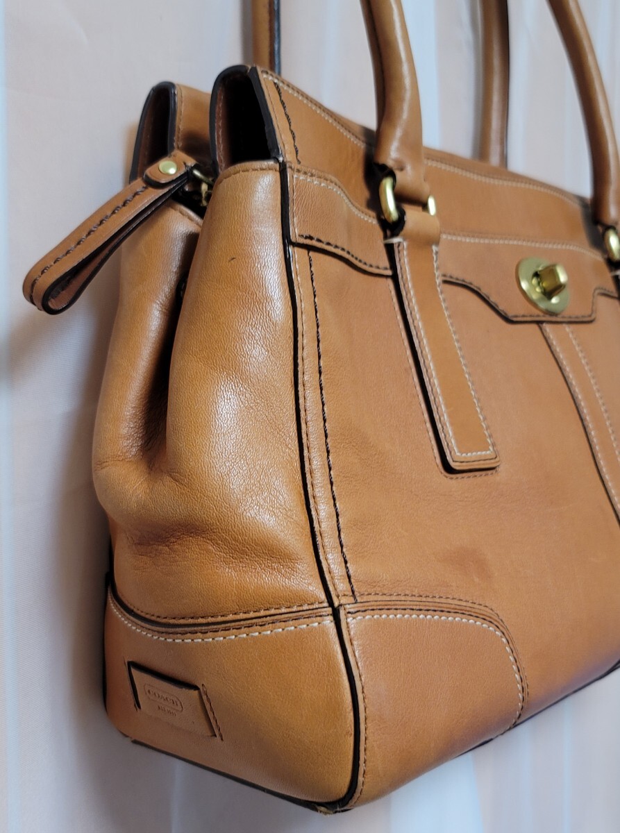 ◆総レザーの自立性のあるトートバッグになります。ファスナー開閉式なので貴重品も安心です。ひねり金具の外ポケットがレトロ調のデザインです。